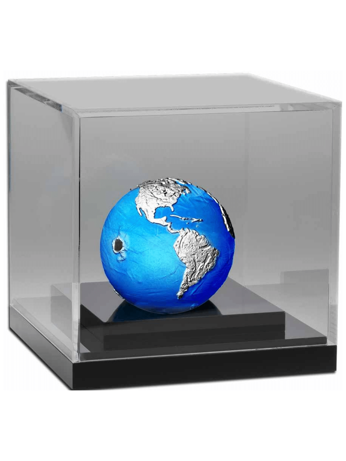 BLUE MARBLE ENDANGERED 3 Oz Silver coin is the new issue in the “Blue Marble” series and is dedicated to our precious planet – the Earth, featuring a real Chondrite Meteorite. The coin has a wonderful spherical shape, is realized with a translucent blue enamel and with a water transfer print. The coin comes in a luxury case, along with the Certificate of Authenticity. Limited mintage to 999 pieces Worldwide!