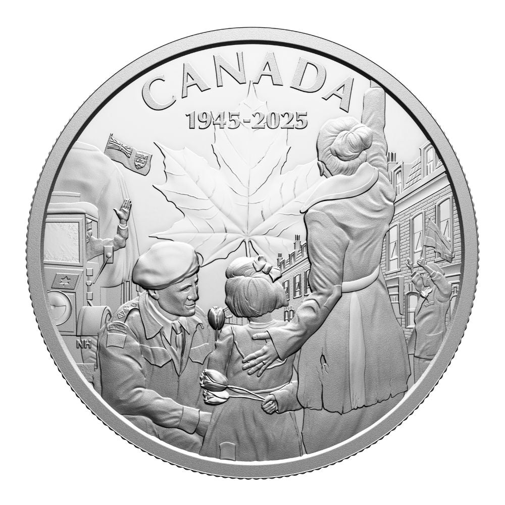 - A tribute to those who fought and endured. This fine silver coin commemorates the 80ᵗʰ anniversary of the end of the Second World War in Europe (“1945-2025”) by focusing on the Liberation of the Netherlands, which was spearheaded by Canadian troops, and which resulted in a longstanding friendship between the two nations.
