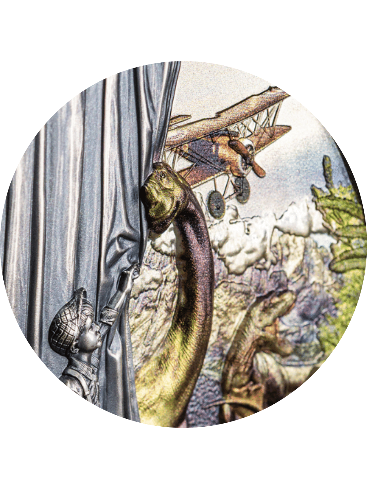 ADVENTURE 2 Oz Silver coin is the second issue of the "Daydreamer" series: the Adventure. It represents a person who undertakes an imaginary journey which allows the mind to break free from the day-to-day noise to seek a serene fictional place. The coin has an Antique Finish quality, a Smartminting technology and comes in a beautiful case, along with the Certificate of Authenticity. Limited mintage of only 1500 pieces worldwide!
