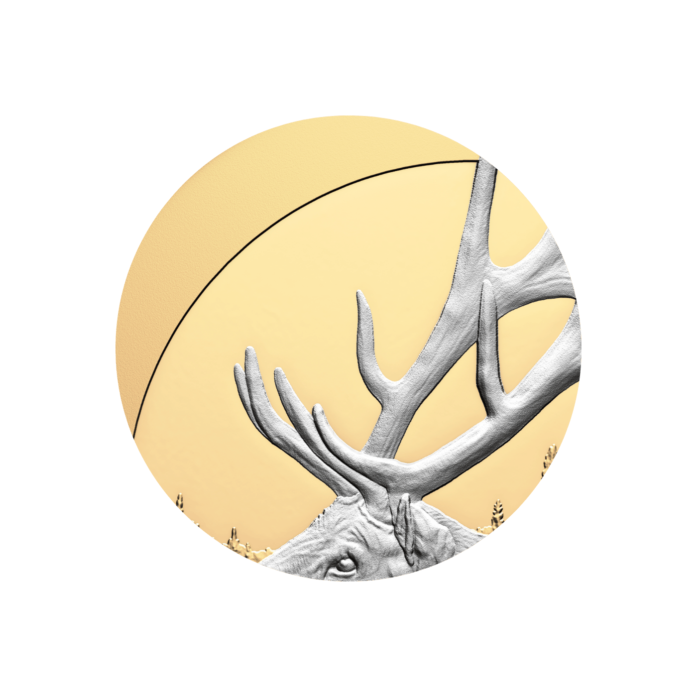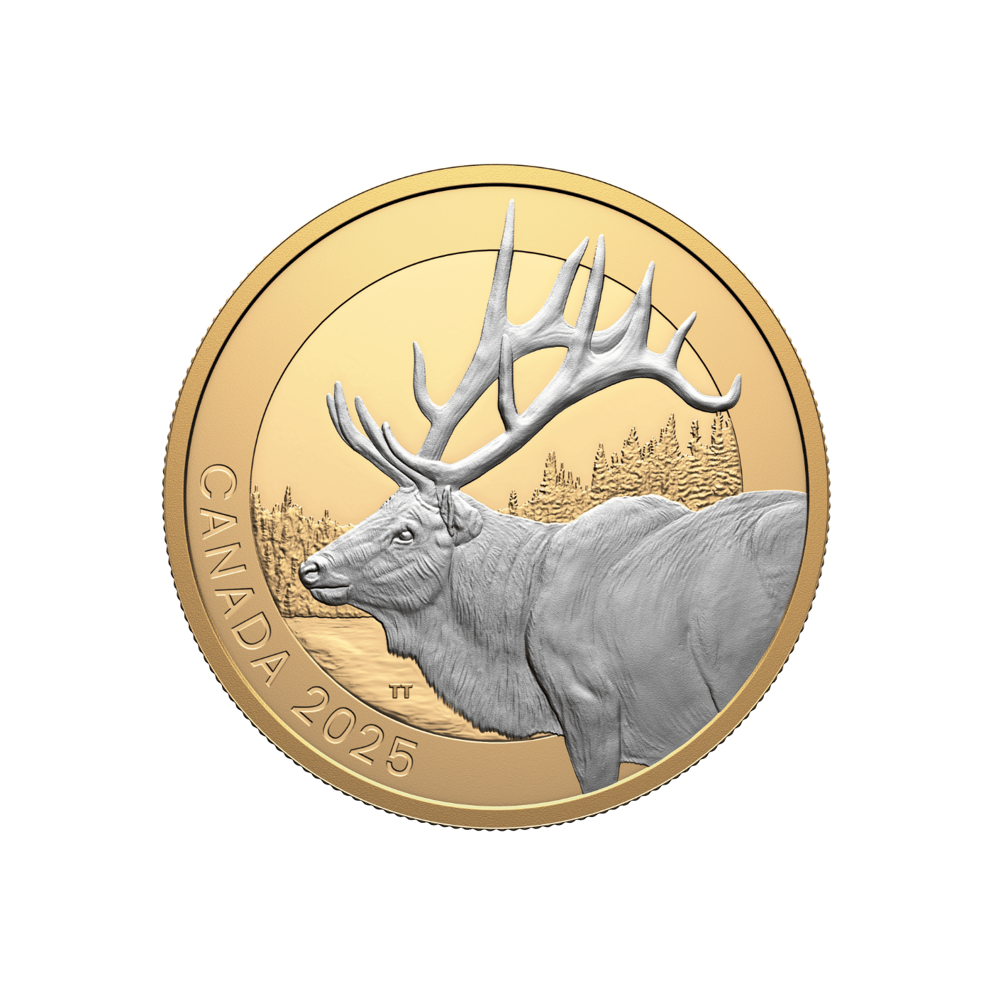 - Beyond boundaries. The elk on your coin’s reverse stands tall – in fact, its antlers extend beyond the framed centre portion. This helps blur the boundary between humans and the natural world, and brings you closer to this famous antlered species.