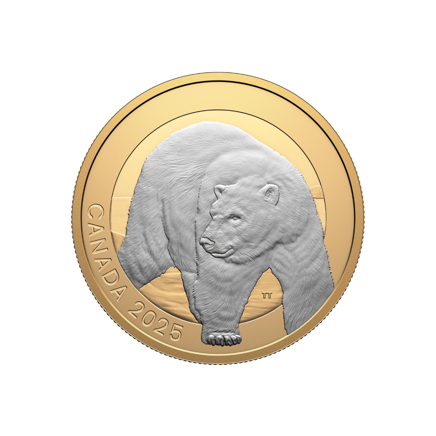 Step into the wild, or let it come to you, with the new Animal Portraits series of selectively gold-plated 99.99% pure silver coins! This first coin travels to Canada’s Arctic region for a view of the great northern bear: Ursus maritimus, better known as the polar bear, the largest of Canada’s four resident bear species. This coin’s reverse offers a rare close encounter with this revered Arctic emblem, unguarded and seemingly unaware of the viewer’s presence, as it casually steps out of the framed centre portion.