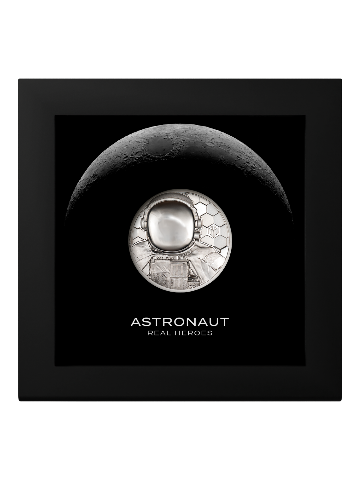 ASTRONAUT 1 oz Platinum coin is the final release in the "Real Heroes" series and is dedicated to the figure of the Astronaut, honoring the monumental efforts of space explorers like Yuri Gagarin and Neil Armstrong. The coin has an Ultra High Relief, has Proof quality and comes in a case, along with the Certificate of Authenticity. Limited mintage of 199 pieces worldwide!