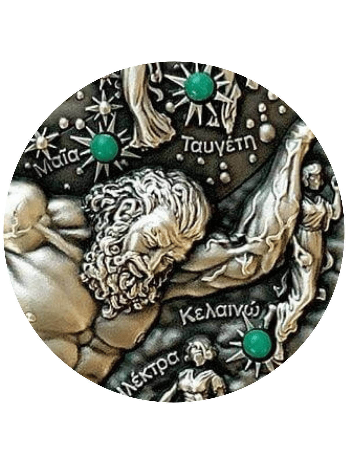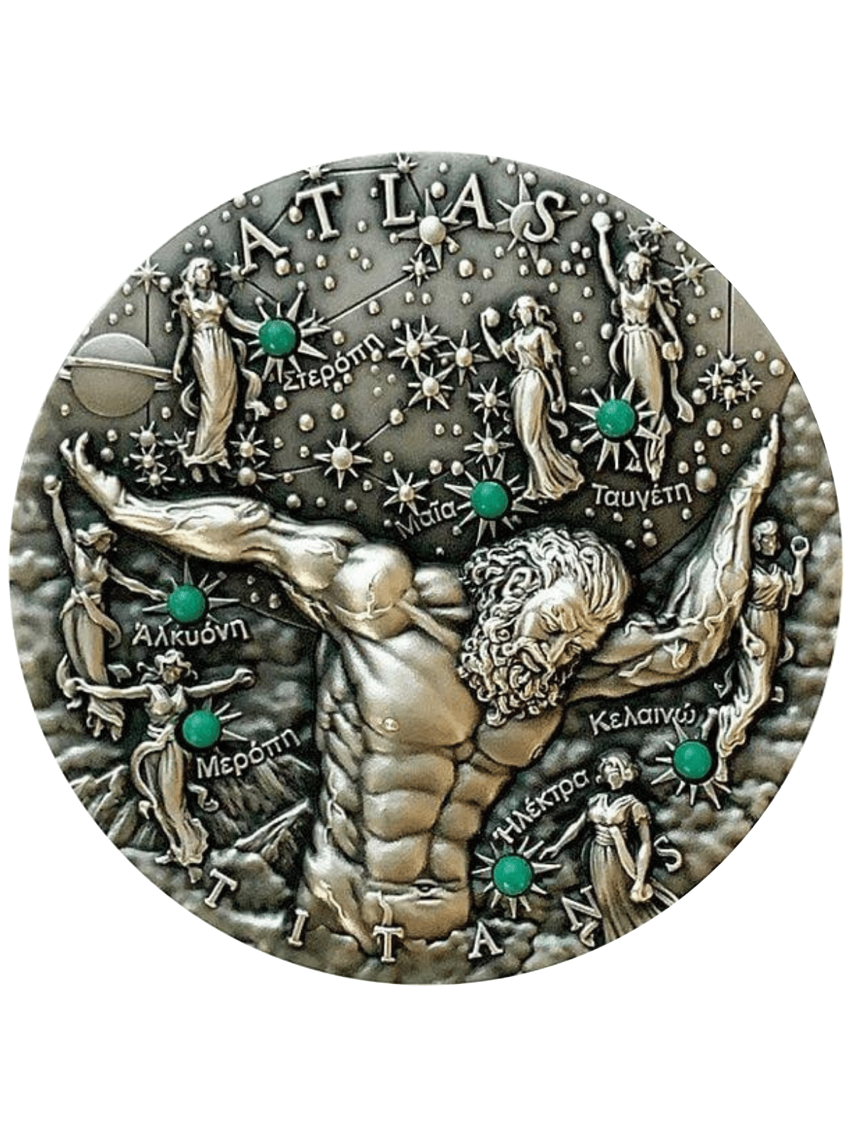 This remarkable coin pays homage to Atlas, the Titan of Greek mythology tasked with bearing the weight of the celestial heavens