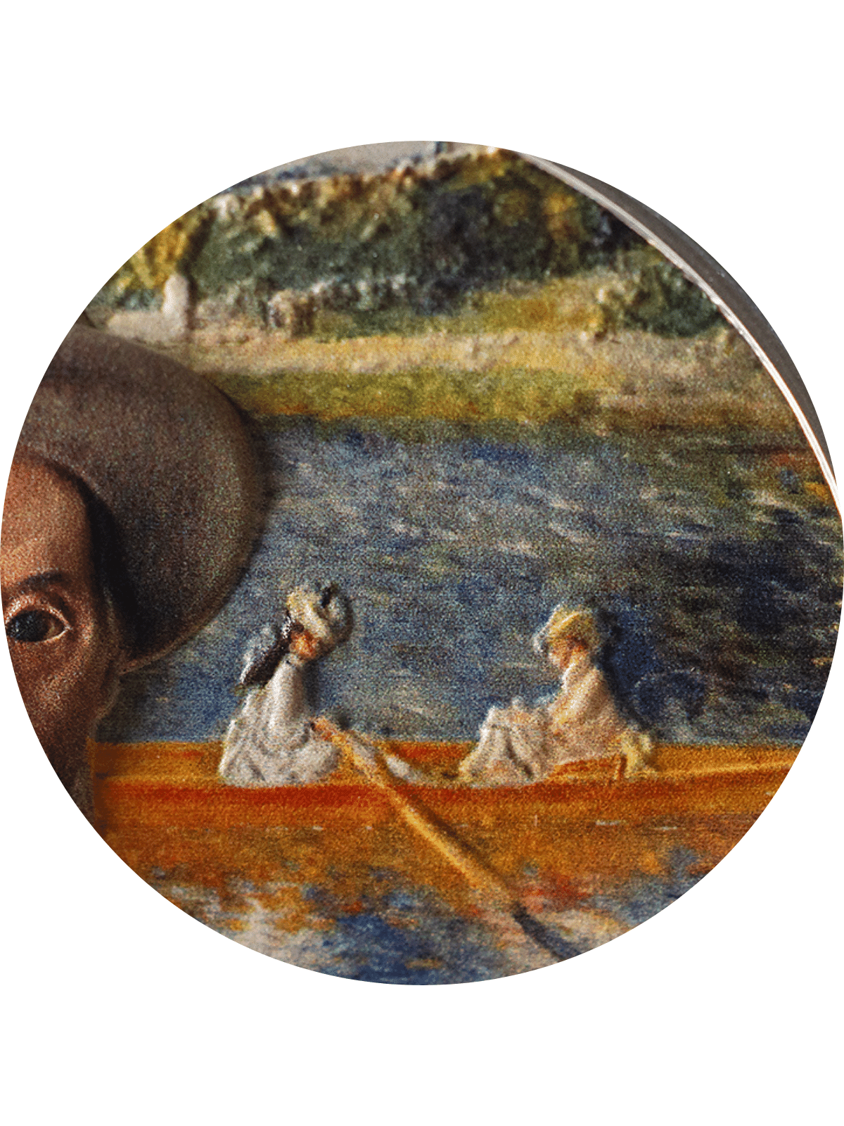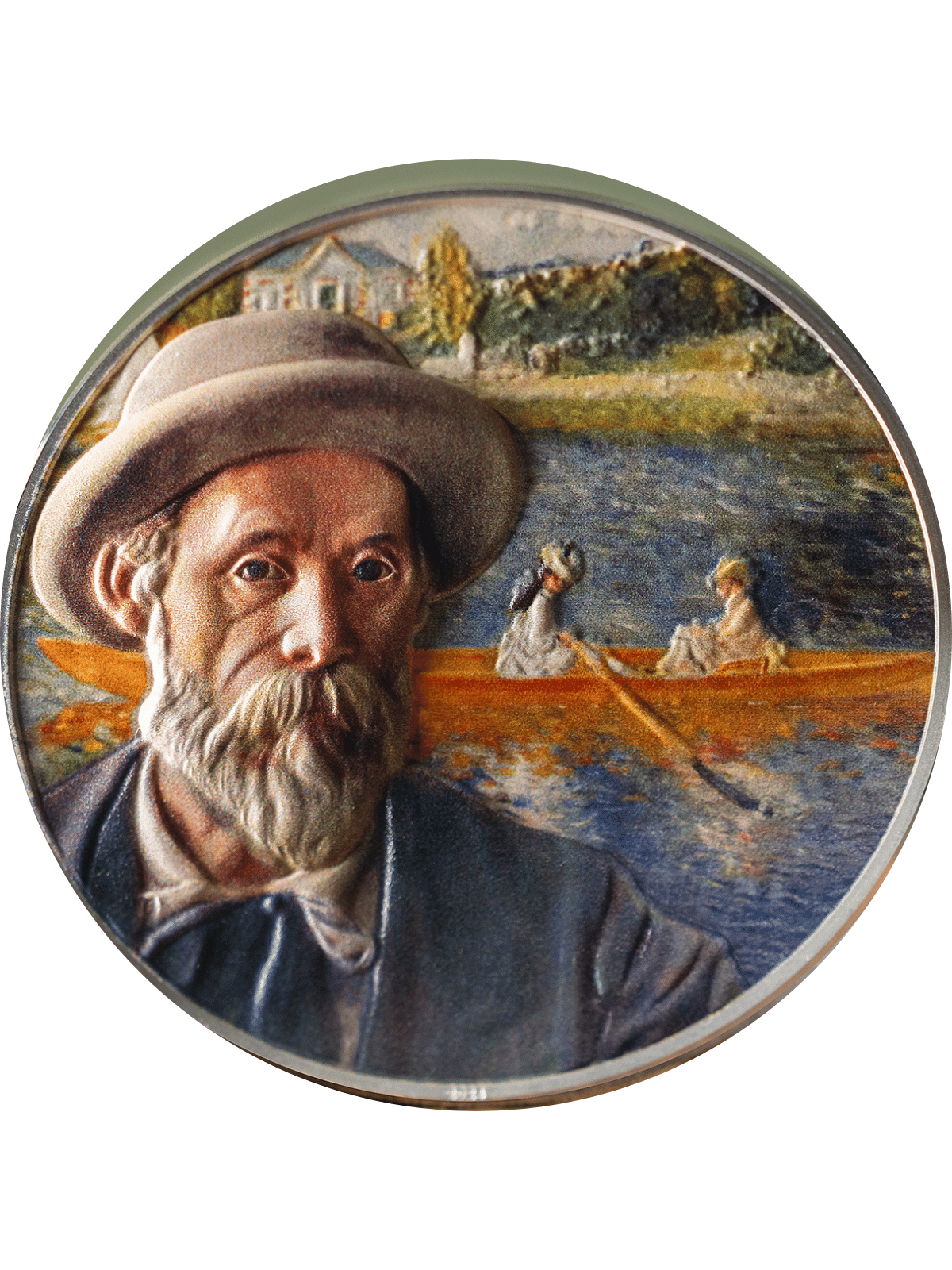 AUGUSTE RENOIR 2 Oz Silver coin is the new issue in the "Masters of Art" series, honoring of the greatest painters. In this issue: Auguste Renoir. The coin features Smartminting technology, has Proof quality and a delicate coloration. It comes in a beautiful case, along with the Certificate of Authenticity. Limited mintage of only 999 pieces worldwide!