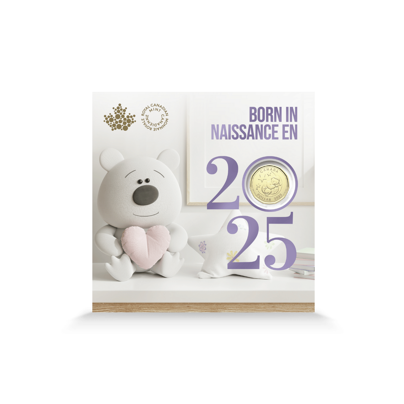 - Exclusive to this gift set. Instead of the classic Loonie, the $1 coin in this set features a cute star-and-moon baby theme and an iconic Canadian animal: the polar bear. This special-themed coin is only available as part of the 2025 Baby Gift Card Set—it is not available on its own.