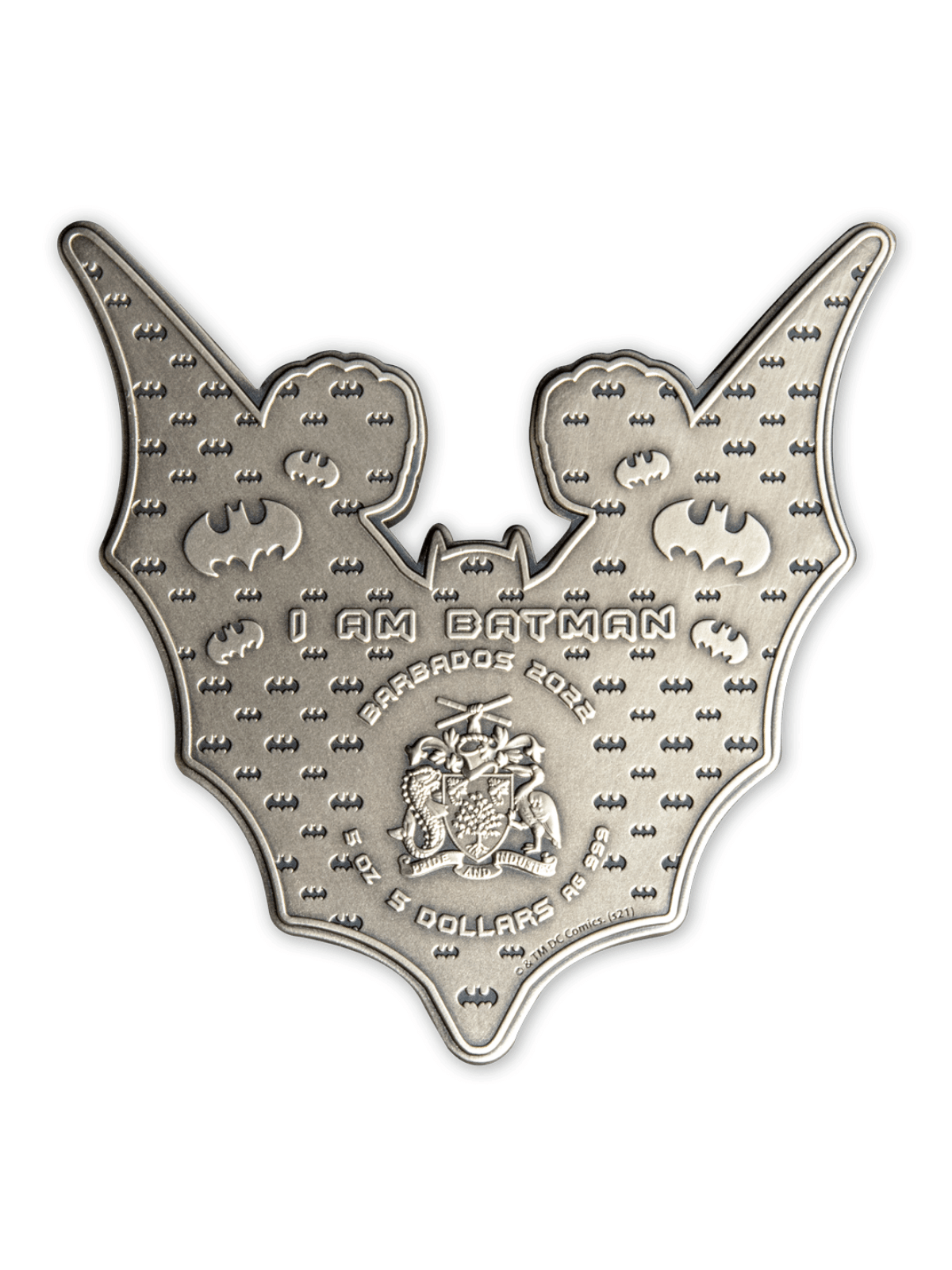 About the BATMAN 5 Oz Shaped Silver Coin $5 Barbados 2022