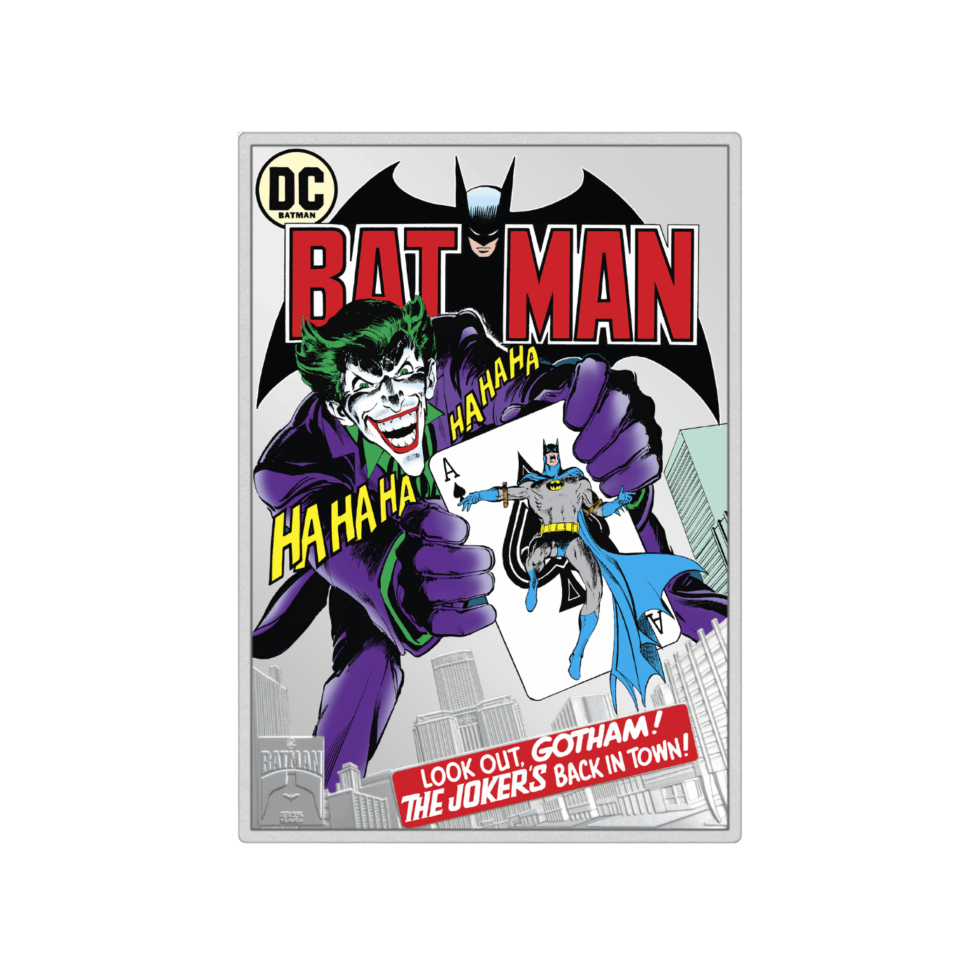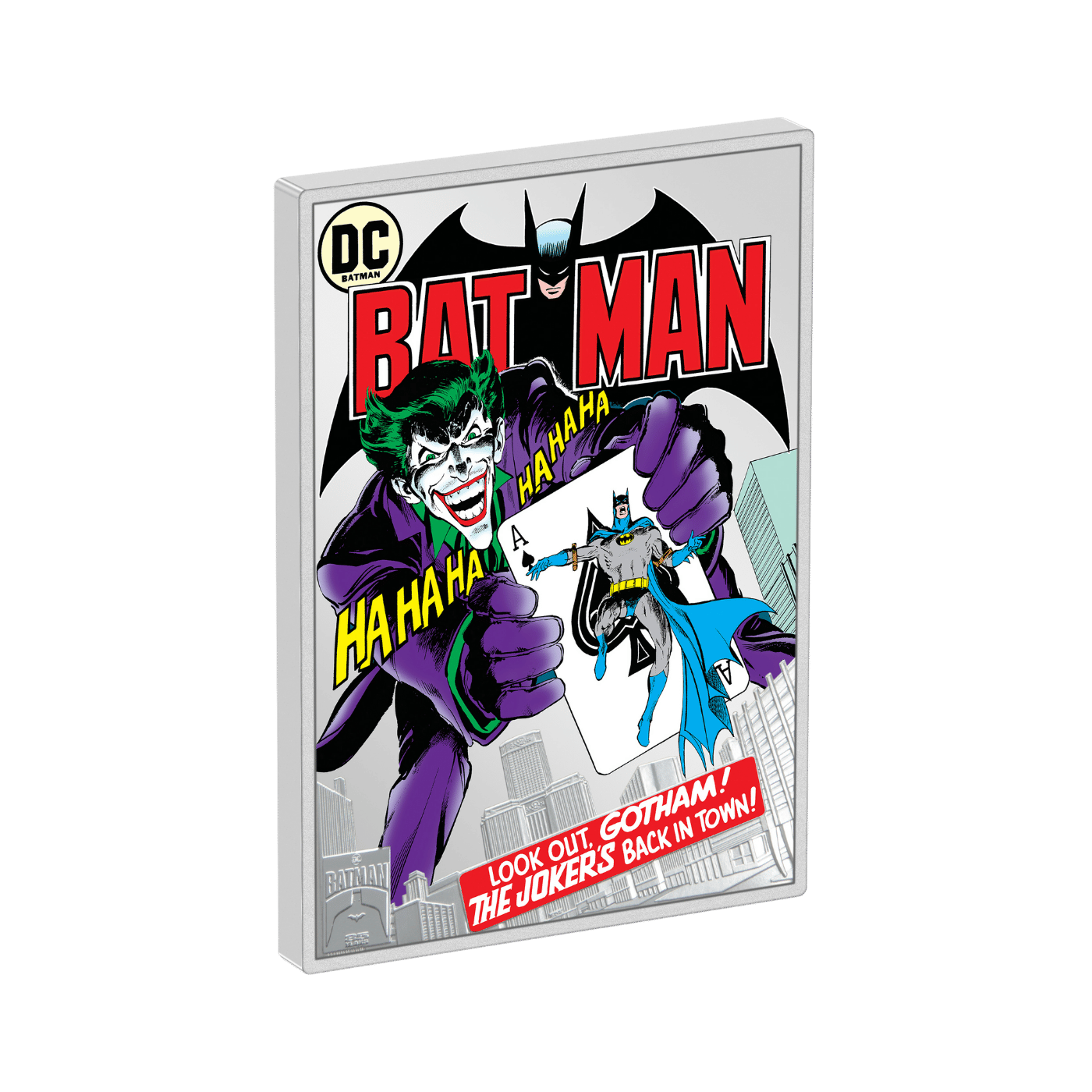 - Rectangular-shaped, the coin is struck with detailed colour and engraving to show the valued comic cover of Batman #251 from 1973.