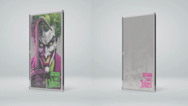 Adding an element of unpredictability worthy of The Joker himself, 10% of the mintage features a chase variant. This rare edition transforms the artwork into a fully engraved grey design accented with bold pink lettering, creating a more sinister and striking visual contrast.