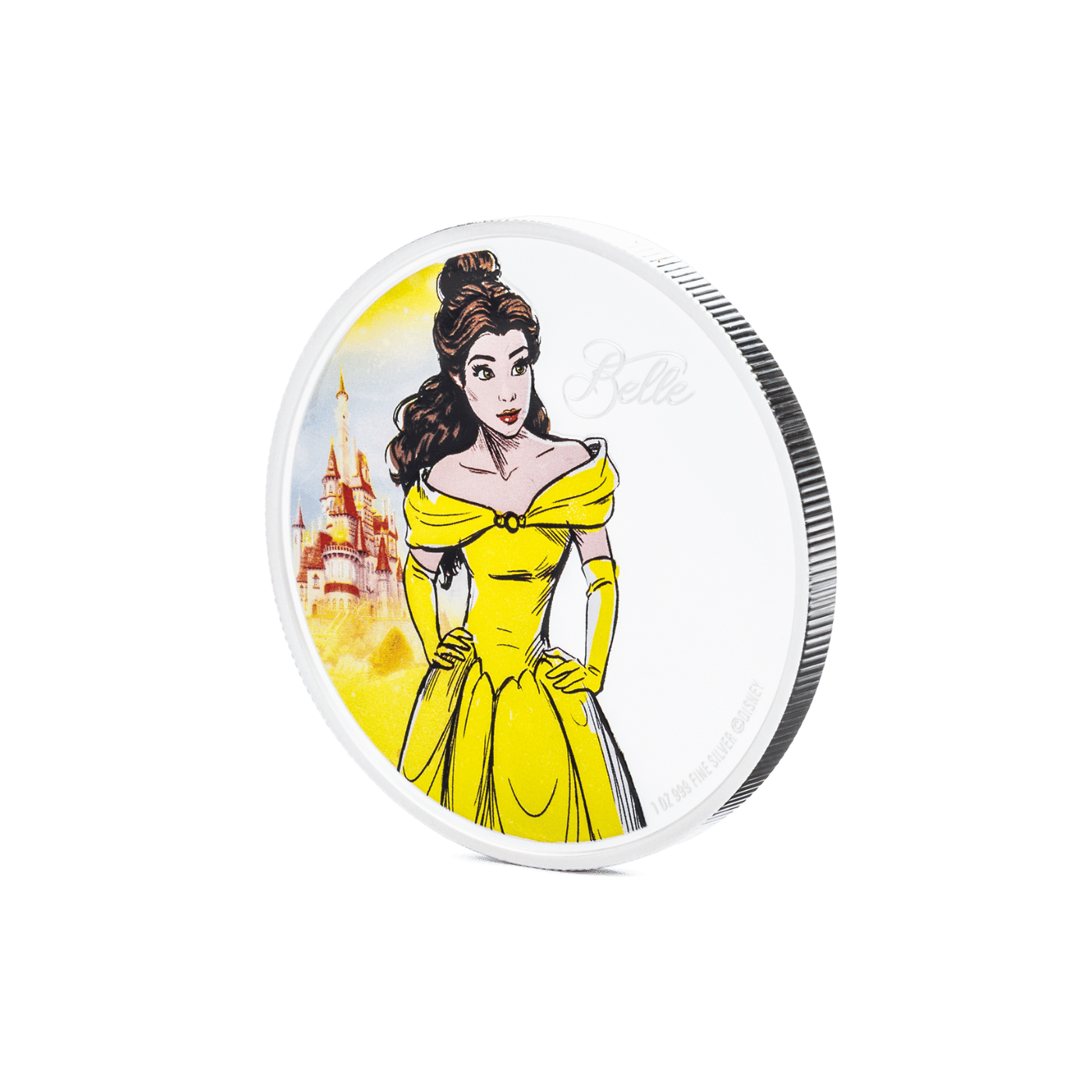 This 1oz pure silver coin is the third release in our Disney Princess series. It captures Belle’s golden beauty in stunning detail.