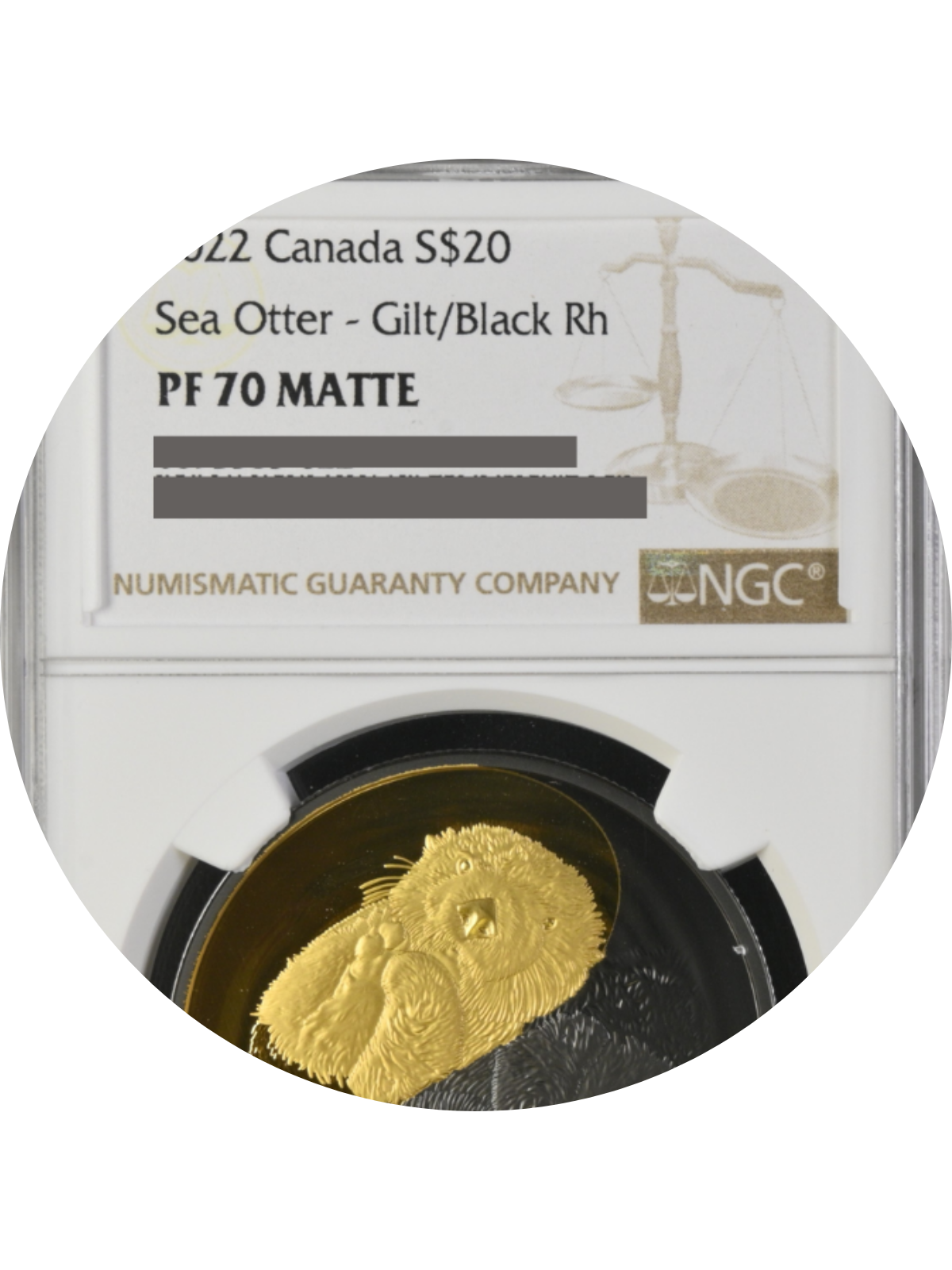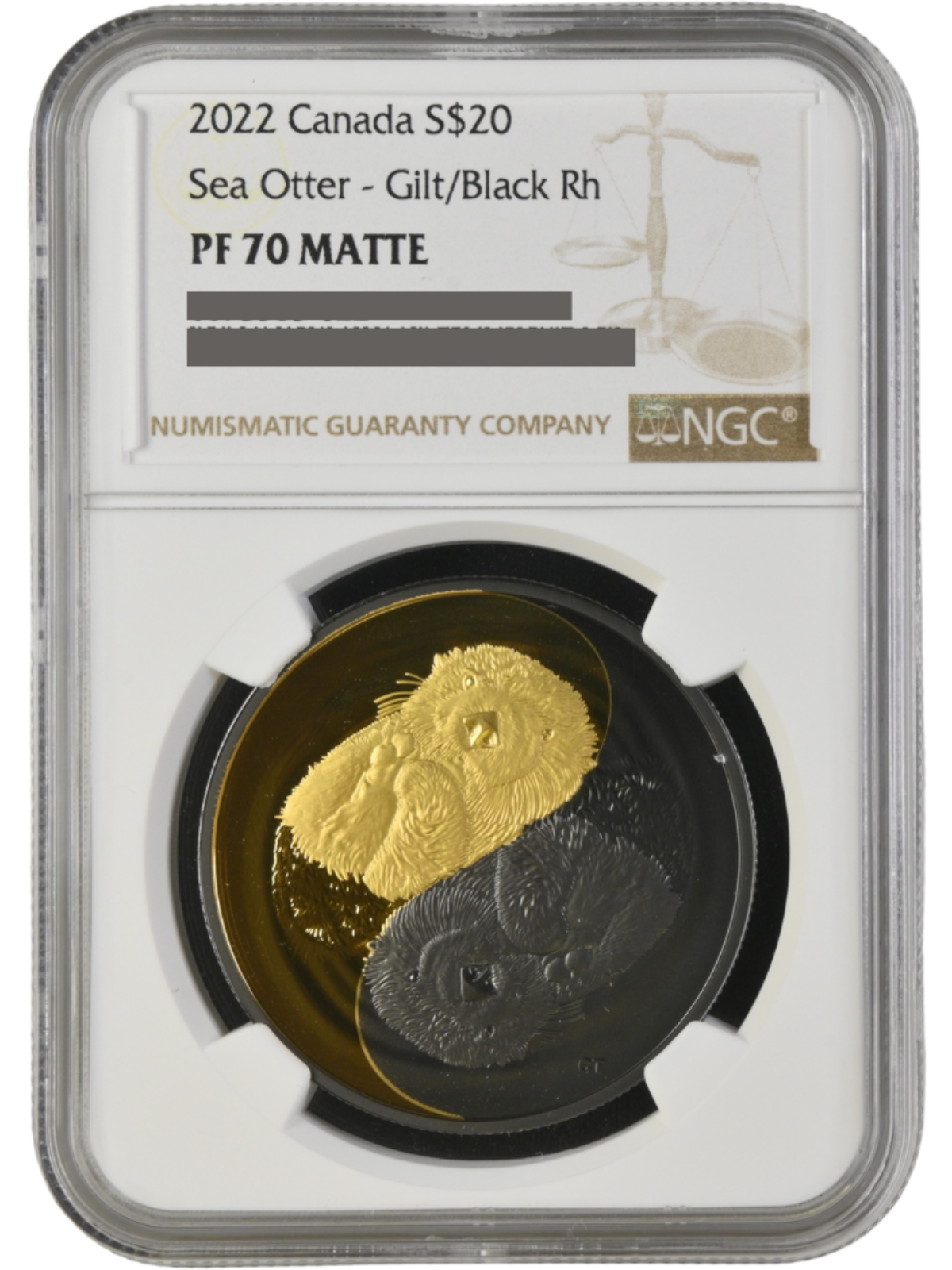 About the Black and Gold-SEA OTTER Silver Coin $20 Canada 2022 - NGC Graded PF 70 Matte