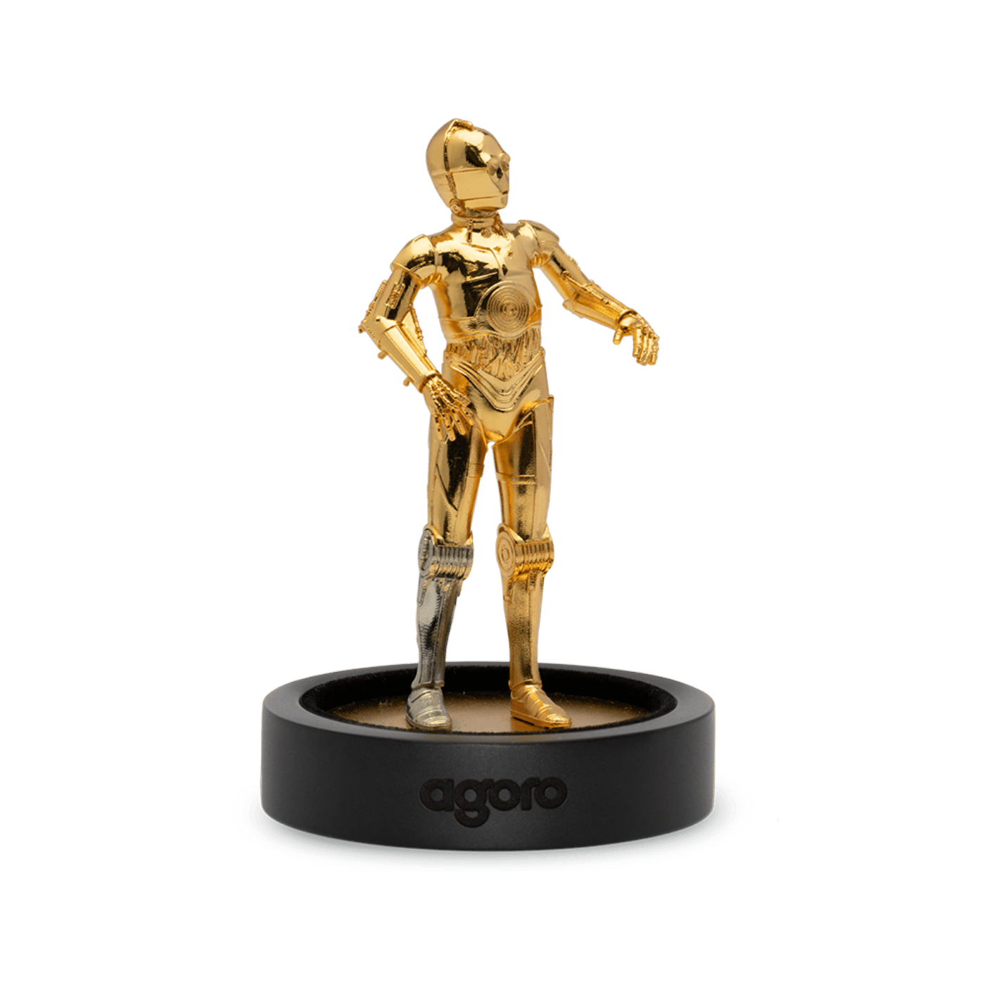 Originally built by a young Anakin Skywalker on Tatooine, C-3PO has become one of the most recognizable and beloved characters in the Star Wars™ galaxy. Reimagined in 150g of 925 sterling silver, this finely crafted collectible pays tribute to the etiquette and protocol droid who’s been part of every generation of the saga.