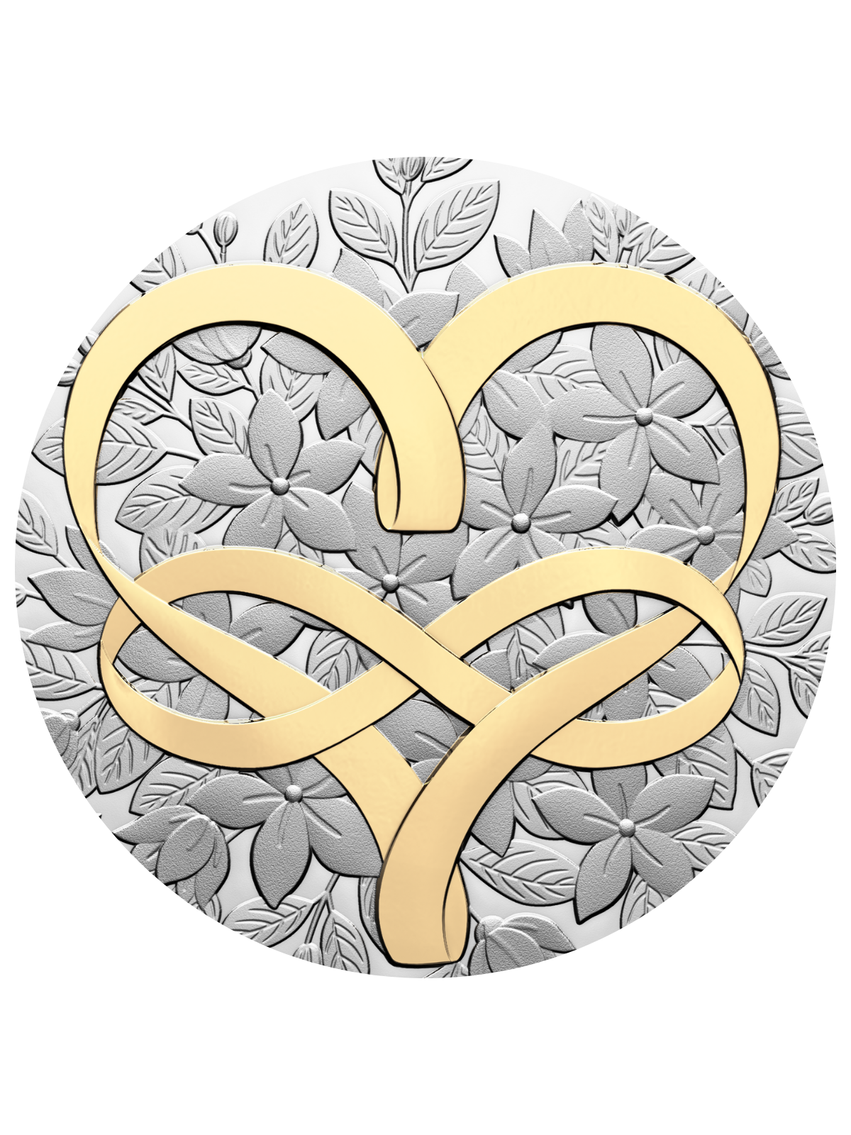 Crafted from 99.99% pure silver, this coin is a tangible expression of appreciation and affection for someone special in your life. The reverse design, skillfully created by Canadian artist Jori van der Linde, features an everlasting bouquet of jasmine flowers and an intricately detailed infinity heart. The jasmine flowers, known for their sweet fragrance and symbolic significance in various cultures, represent beauty, love, purity, and good luck. Enhanced by yellow gold plating, a ribbon weaves through the flowers, forming the infinity heart that symbolizes unity and an unending bond.