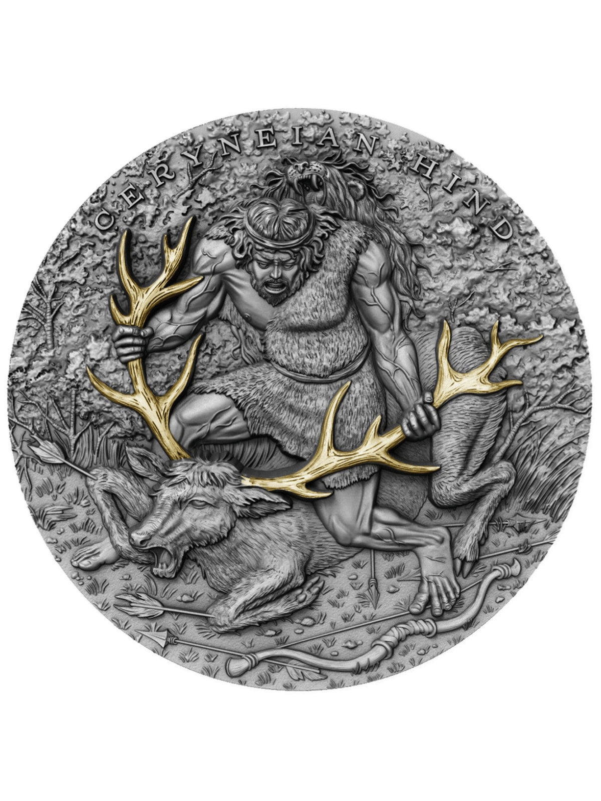 CERYNEIAN HIND 2 Oz Silver coin is the third release in the “Twelve Labours of Hercules” series, dedicated to one of the Twelve Labours – Ceryneian Hind. The coin features a beautiful Gold plating, has a great High Relief, has an Antique Finish quality and comes in a themed case, along with the Certificate of Authenticity. Limited mintage to only 500 pieces worldwide!