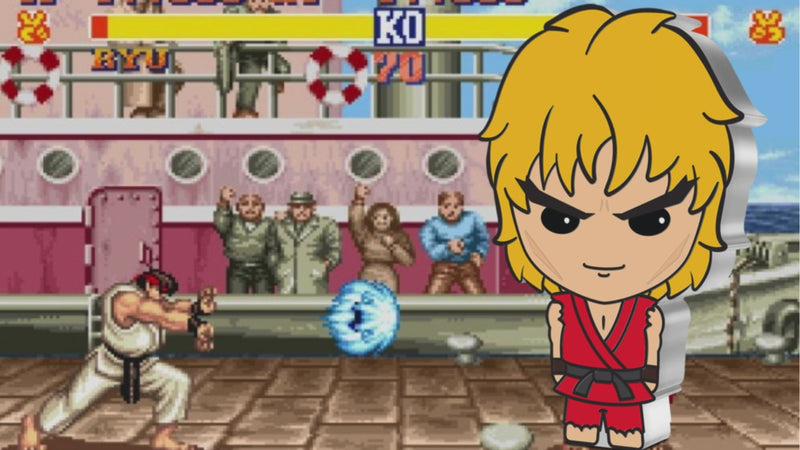 KEN MASTERS Street Fighter Chibi 1 Oz shaped Silver coin is the new release from the "Chibi" series and features the Ken Masters who made appearance in 1987 in the original Street Fighter™ and has appeared in every major Street Fighter game to date! The coin has a beautiful coloration, has a Proof quality and comes in a themed case, along with the Certificate of Authenticity. Limited mintage of 2000 pieces worldwide!