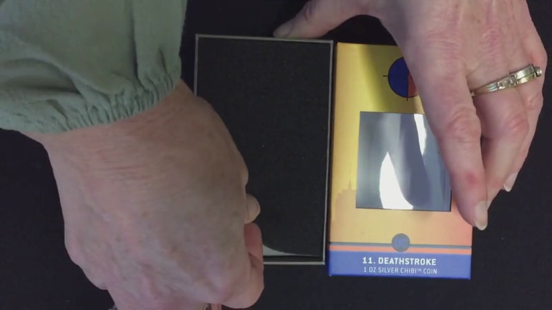 DEATHSTROKE™ DC Comic Series Chibi 1 Oz shaped Silver coin is the new release from the "Chibi" series and features the greatest assassins in the DC Universe, DEATHSTROKE™! The coin has a beautiful coloration, has a Proof quality and comes in a themed case, along with the Certificate of Authenticity. Limited mintage of 2000 pieces worldwide!