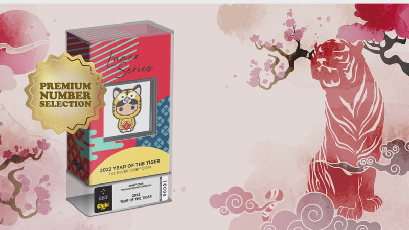 THE TIGER Premium Number Chibi 1 Oz shaped Silver coin is the new release from the "Chibi" series and features the Tiger the animal symbol of the year 2022! The coin has a beautiful coloration, has a Proof quality and comes in a themed case, along with the Certificate of Authenticity. Limited mintage of 2000 pieces worldwide! Numbers 1-100 are available as an authenticated Premium Number Selection and packaged in a secure, click-close acrylic display case!