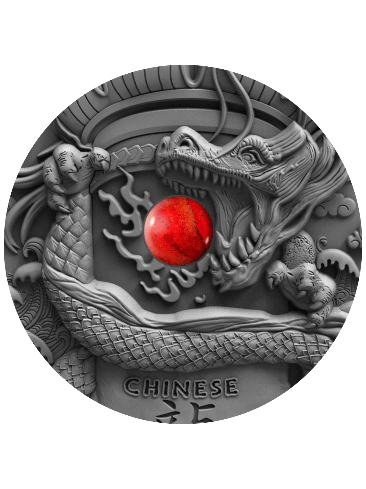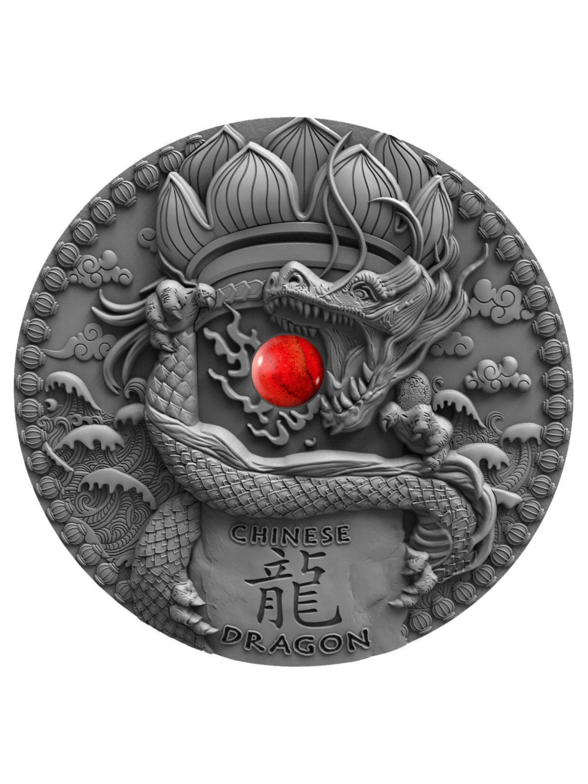 CHINESE DRAGON Coral Dragons 2 Oz Silver coin is the first release in the new “Dragons” series and features Chinese Dragon, the legendary creature of the Chinese mythology. The coin has a beautiful Coral insert, has an incredible High Relief, has an Antique Finish quality and comes in a case, along with the Certificate of Authenticity. Limited mintage of only 500 pieces worldwide!