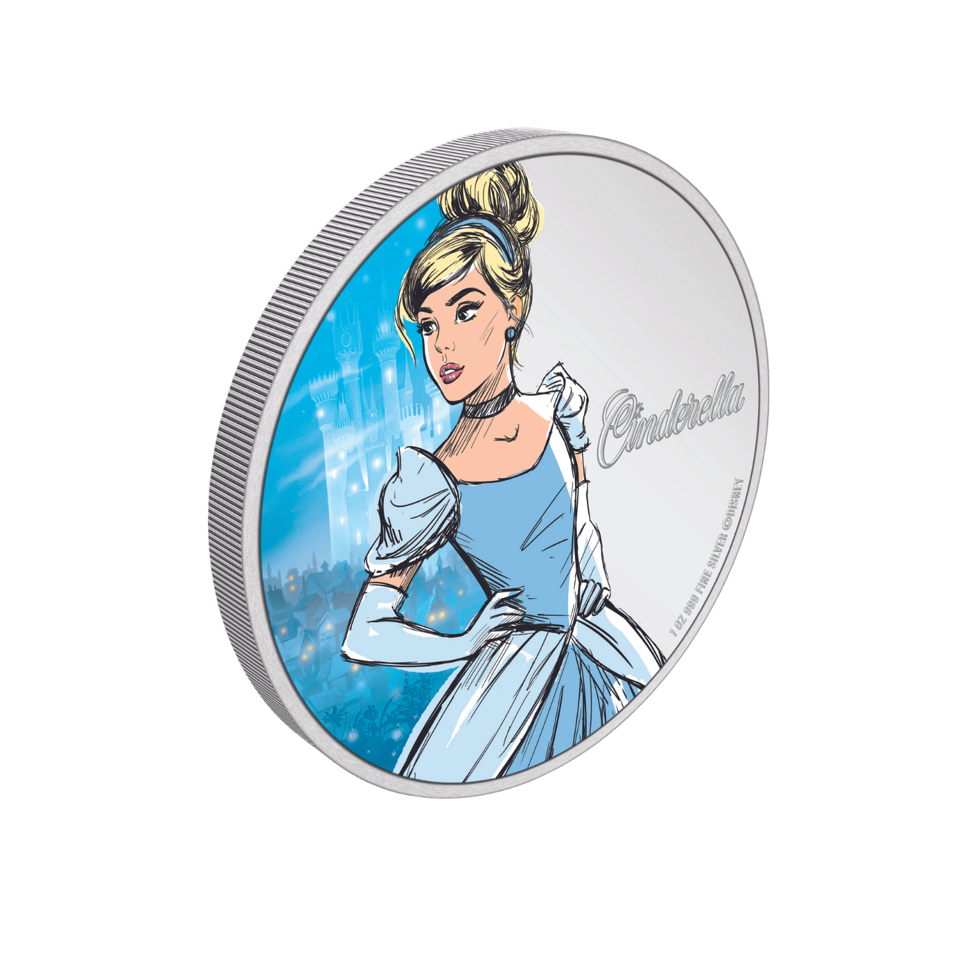 This 1oz pure silver coin is the first release in our Disney Princess series. It captures Cinderella’s timeless elegance in stunning detail.