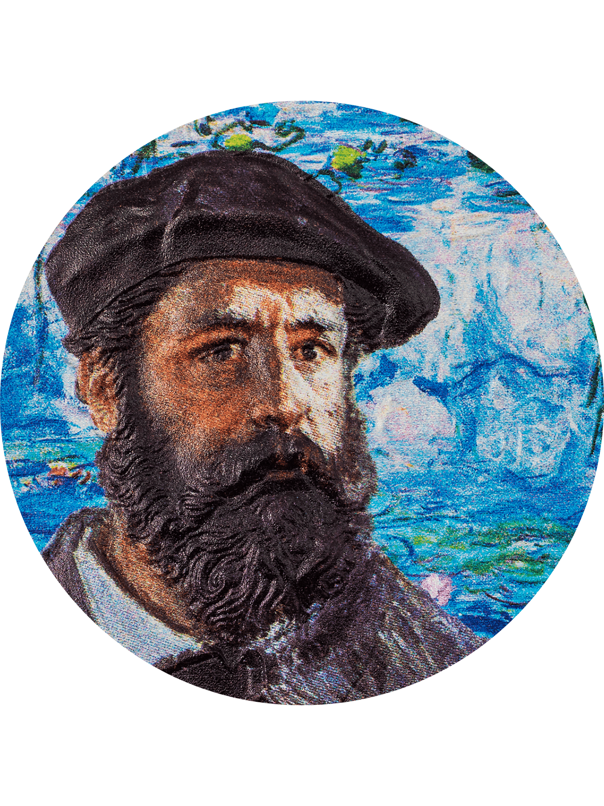 CLAUDE MONET 2 Oz Silver coin is the second issue in the "Masters of Art" series, honouring of the greatest painters. In this issue: Claude Monet. The coin features Smartminting technology, has Proof quality and comes in a beautiful case, along with the Certificate of Authenticity. Limited mintage of only 1500 pieces worldwide!