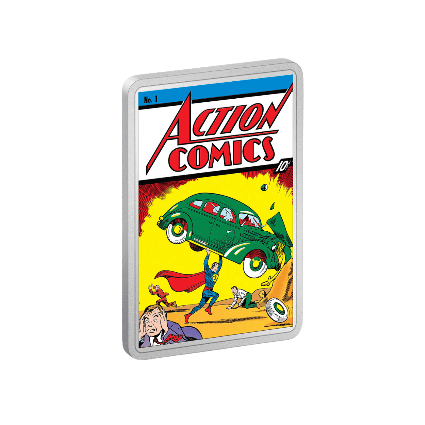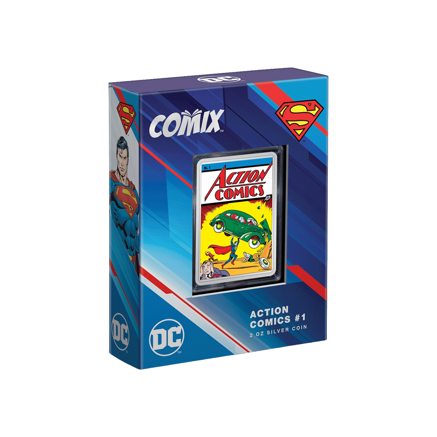 A sight to behold! Action Comics #1 comes to life in the form of a 2oz pure silver coin. As legal tender, the Public Seal of Niue is engraved on the obverse.