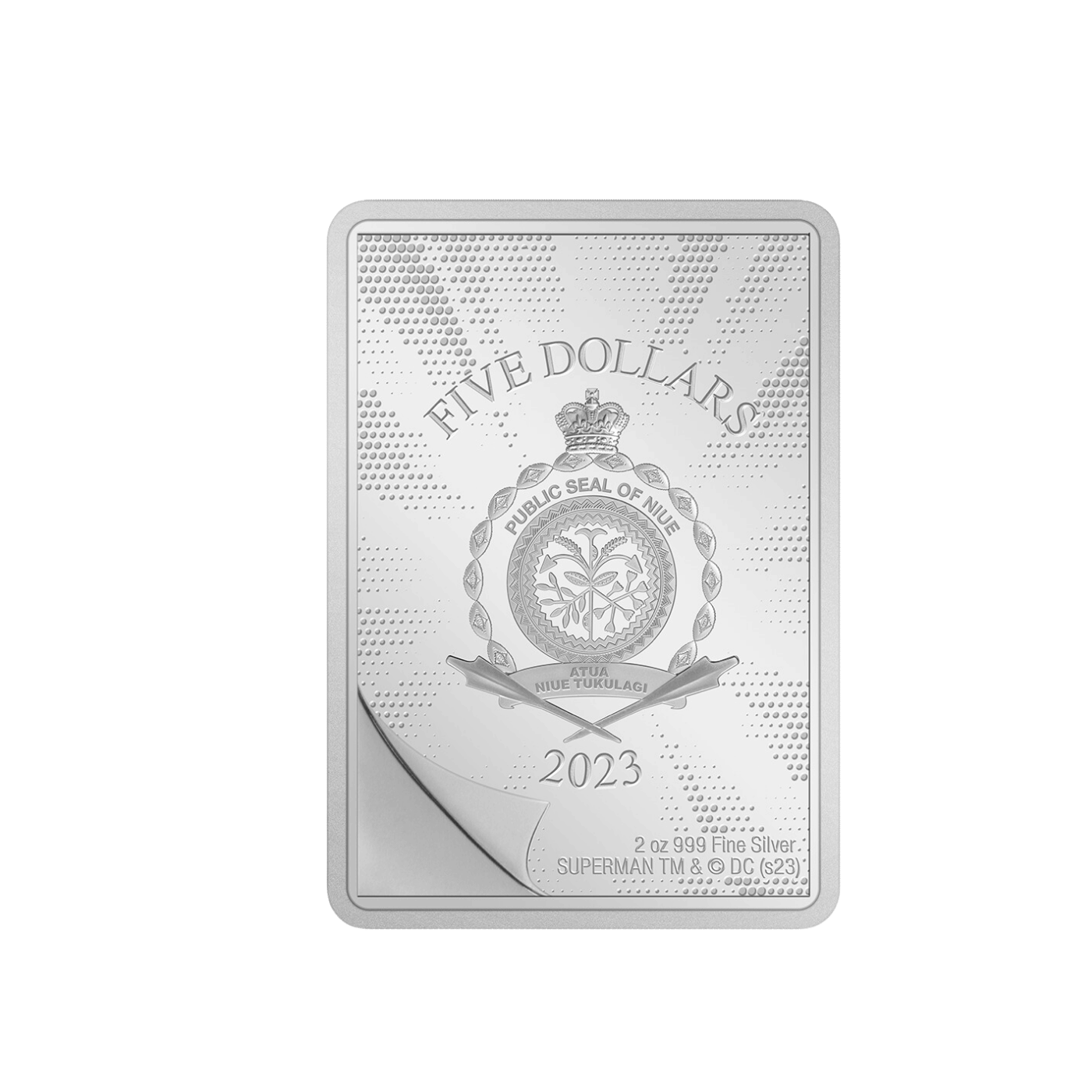 - To mimic the comic book, it is minted into a rectangular coin. A mirror finish border completes the design.