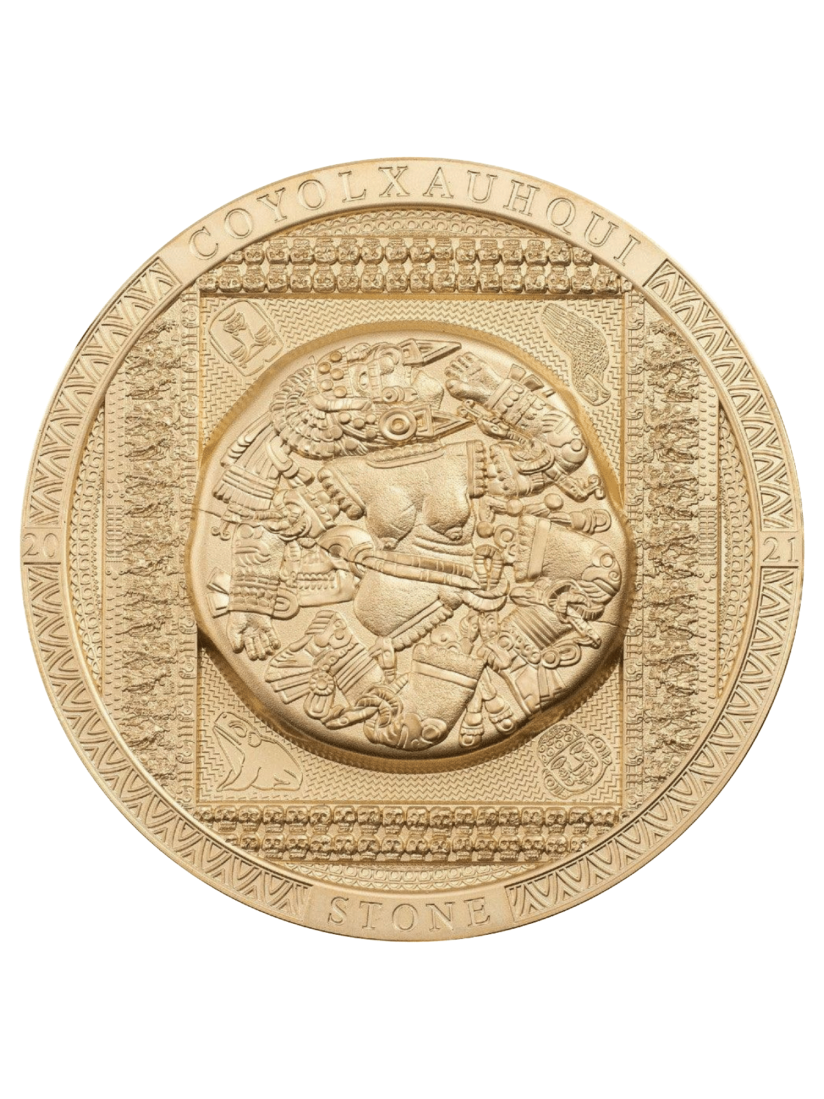 COYOLXAUHQUI STONE Gilded 3 Oz Silver coin is the new release in the “Archeology & Symbolism” series, dedicated to the most famous symbols in history. In this edition – the Coyolxauhqui Stone. The coin features the Smartminting technology, has an Antique Finish quality, is Gold plated and comes in a beautiful case, along with the Certificate of Authenticity. Limited mintage to only 99 pieces worldwide!