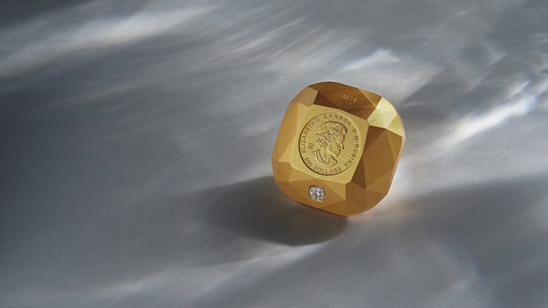 Highly sought-after series of diamond-shaped coins continues with this pure gold ode to the CUSHION cut.