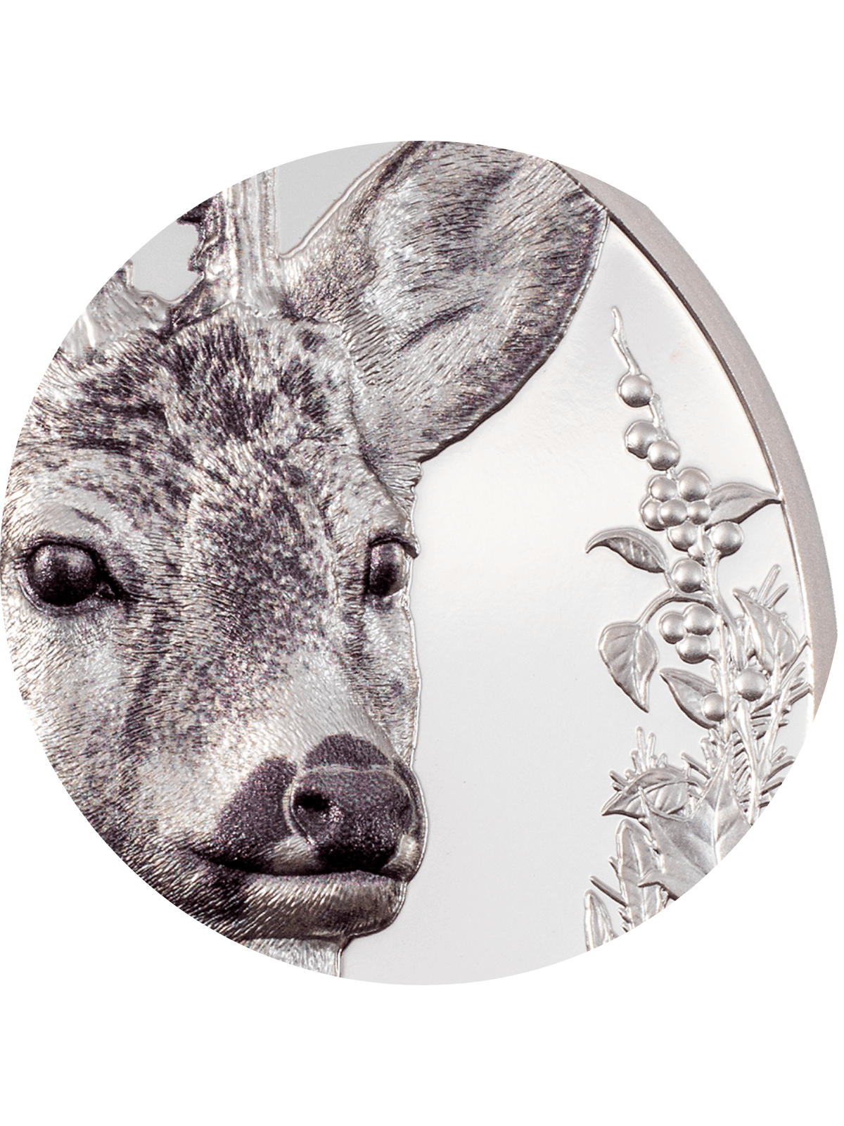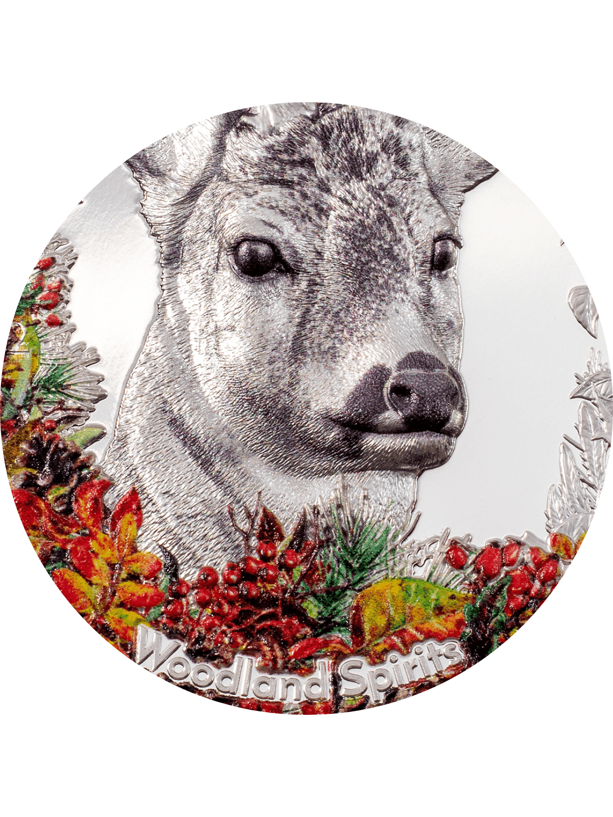 DEER 1 Oz Silver coin is the new issue in the “Woodland Spirit” series, dedicated to the Deer, reminiscent of a fairy tale scene. The coin features the Smartminting technology, has a wonderful coloration, has a beautiful design and comes in a capsule, along with the Certificate of Authenticity. Limited mintage to 1500 pieces worldwide!