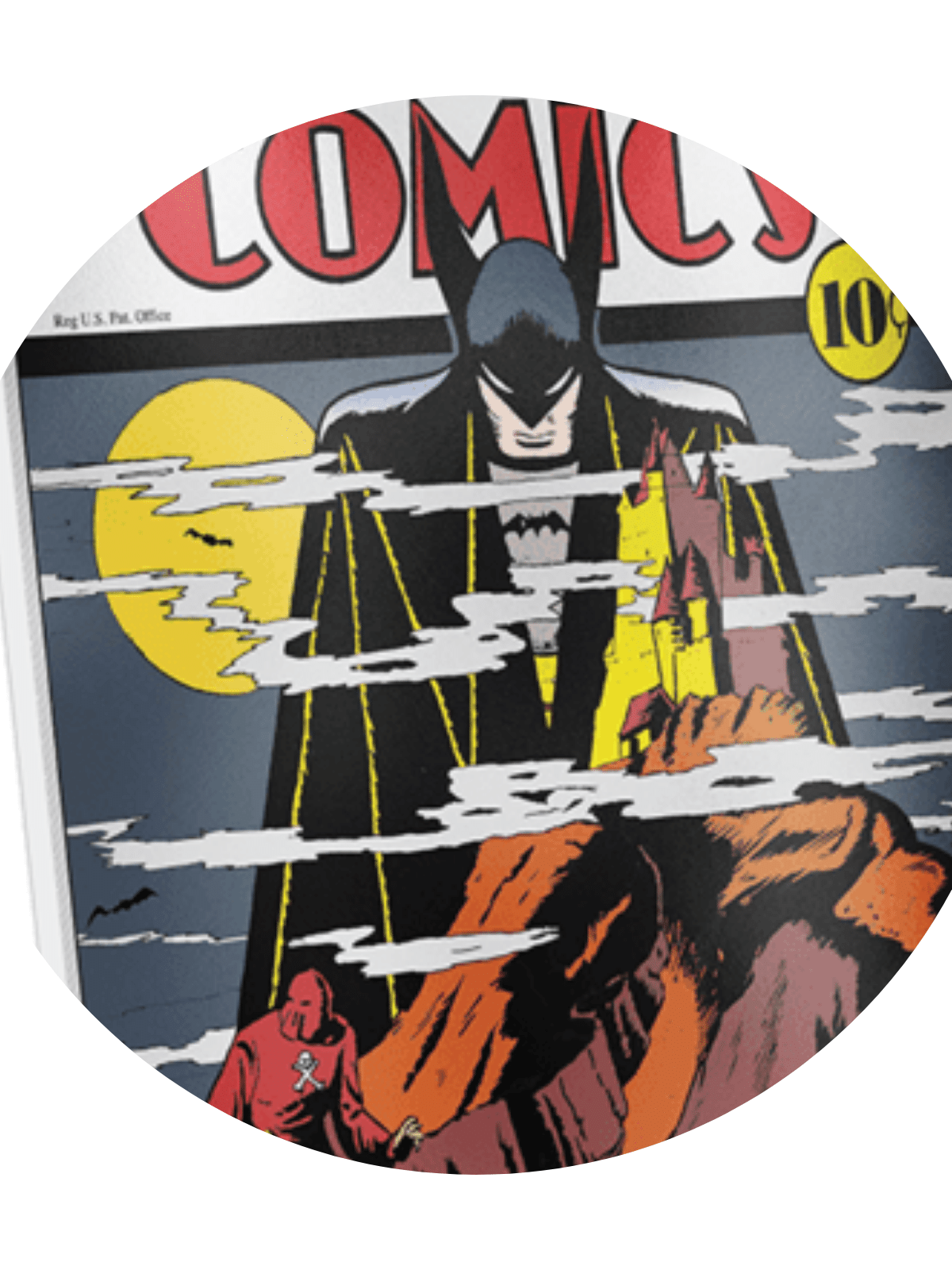 Detective Comics #31 came out in September 1939, featuring a magnificent Bob Kane cover. This issue was special because it’s the first time BATMAN™ fans saw THE MONK™, the flying BATGYRO™ and the BATARANG™.
