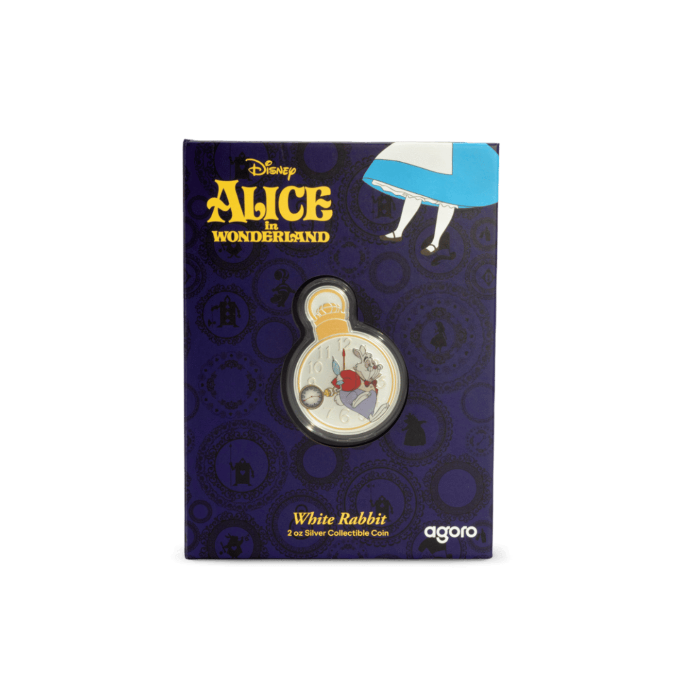 In Disney’s classic 1951 tale Alice in Wonderland, the White Rabbit’s flustered cries that he’s late for a very important date lead Alice on her into the whimsical world of Wonderland. Now, this iconic moment is beautifully immortalized on a 2oz 999 pure silver collectible.