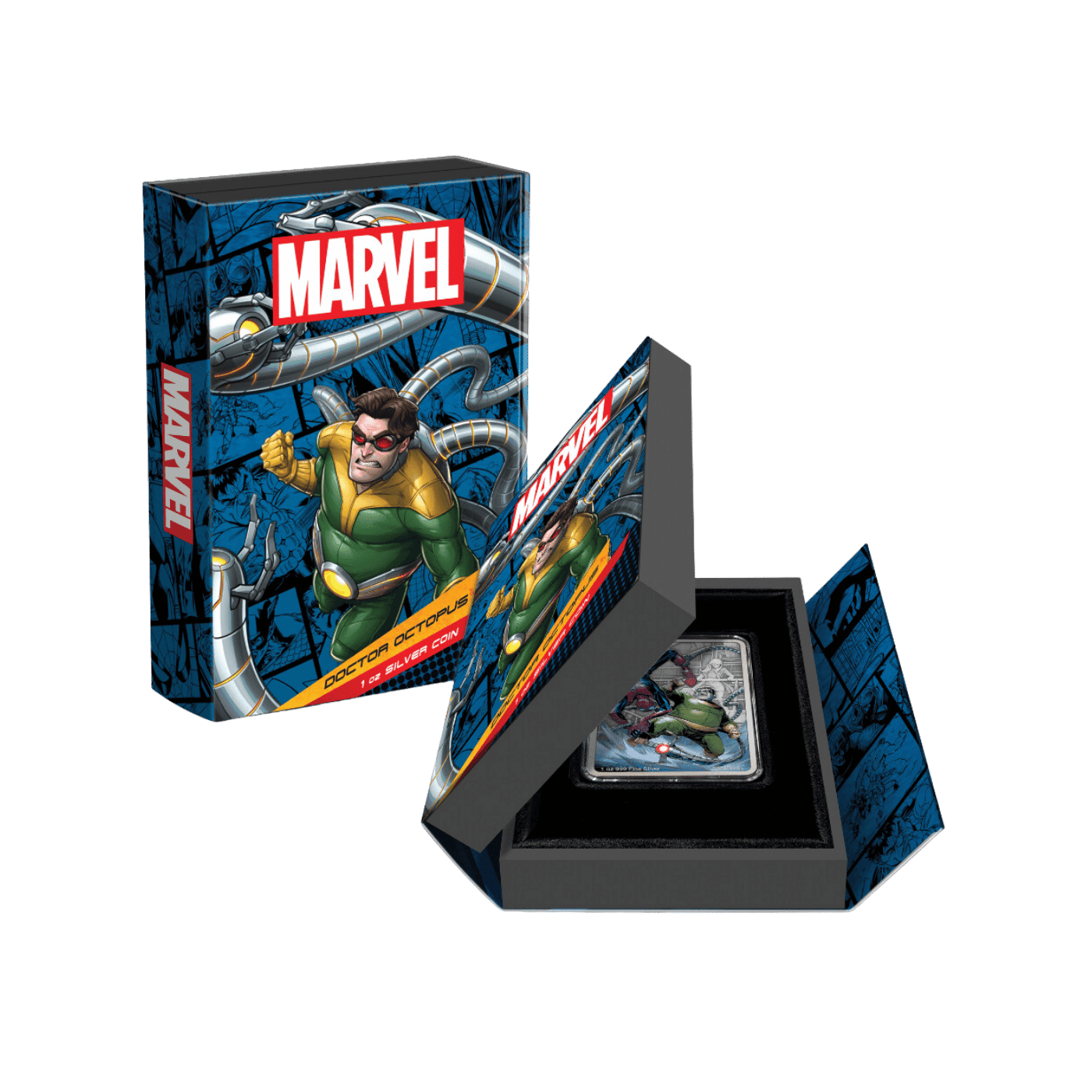 Doctor Octopus is a multi-armed maniacal menace who stops at nothing to gain more power and defeat Spider-Man. Now you can have a 1oz pure silver token of this iconic criminal mastermind.