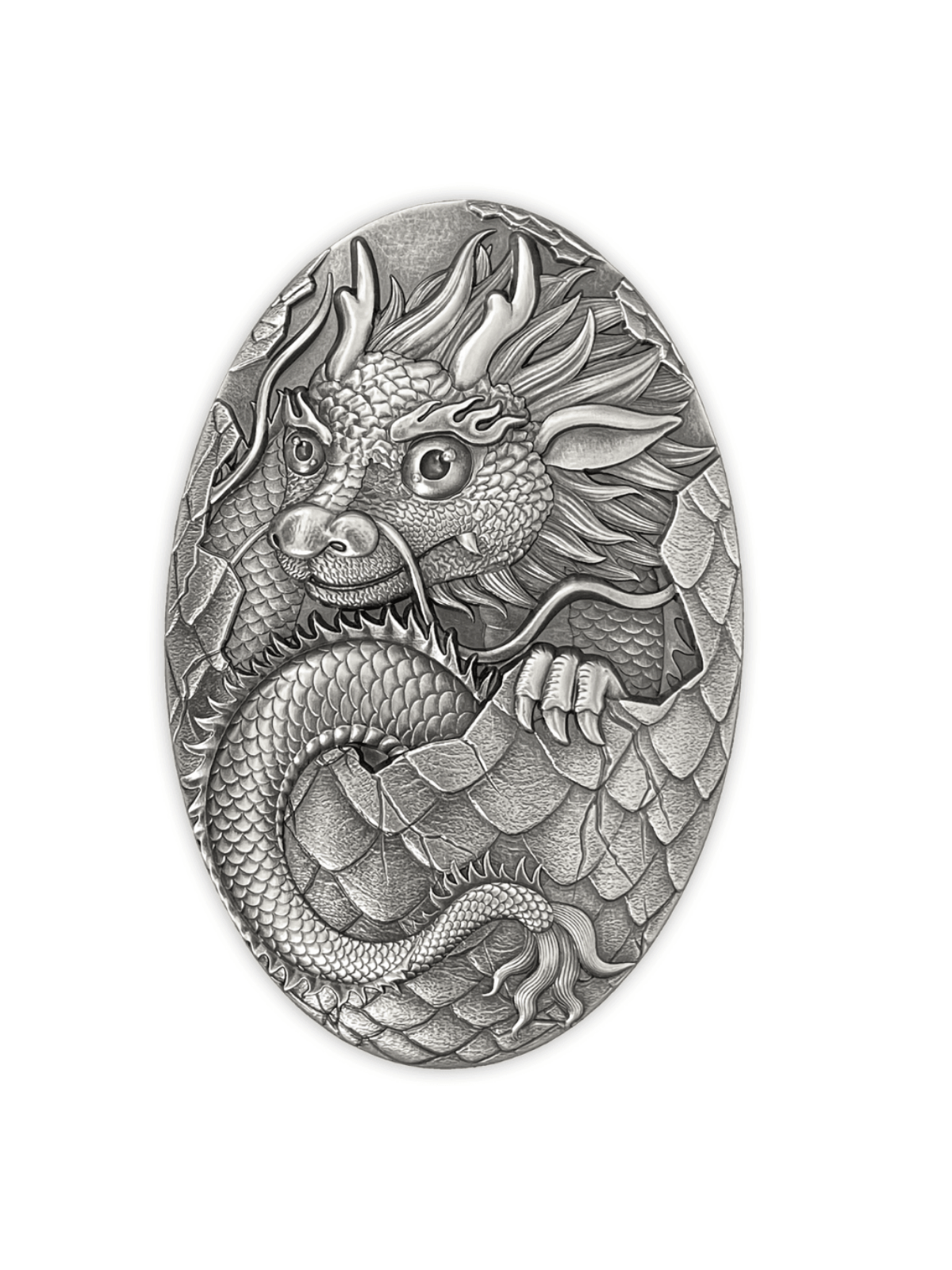 About the DRAGON EGG 3D Shaped 5 Oz Silver Coin 250 Francs Djibouti 2024