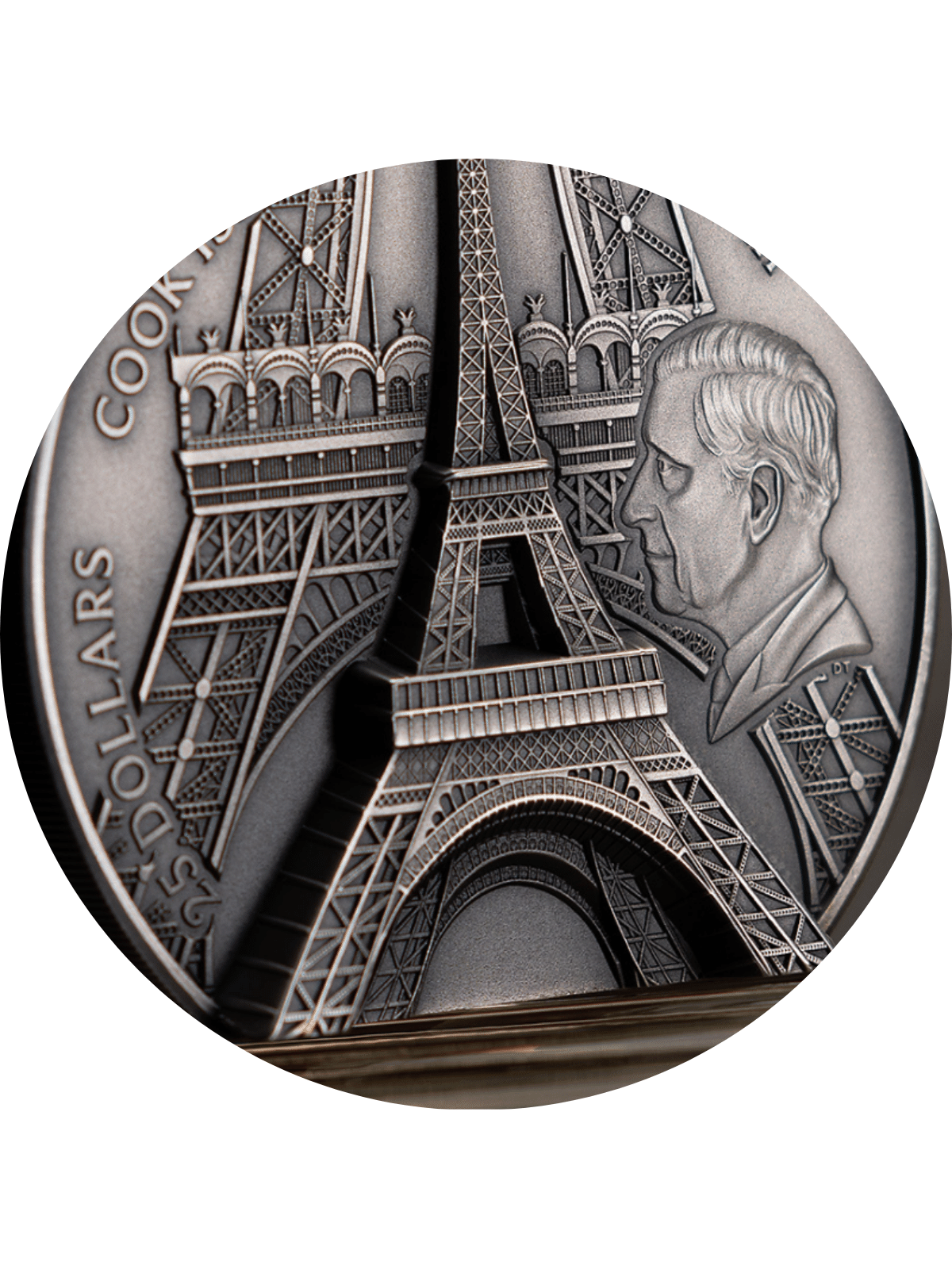 About the EIFFEL TOWER Historical Monuments 5 Oz Silver Coin $25 Cook Islands 2024