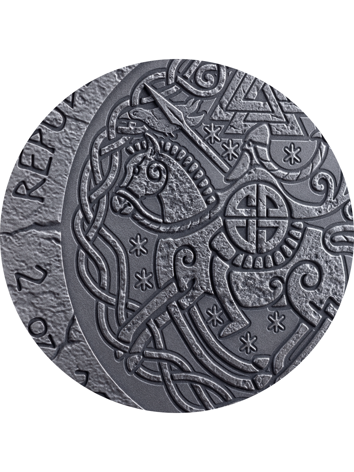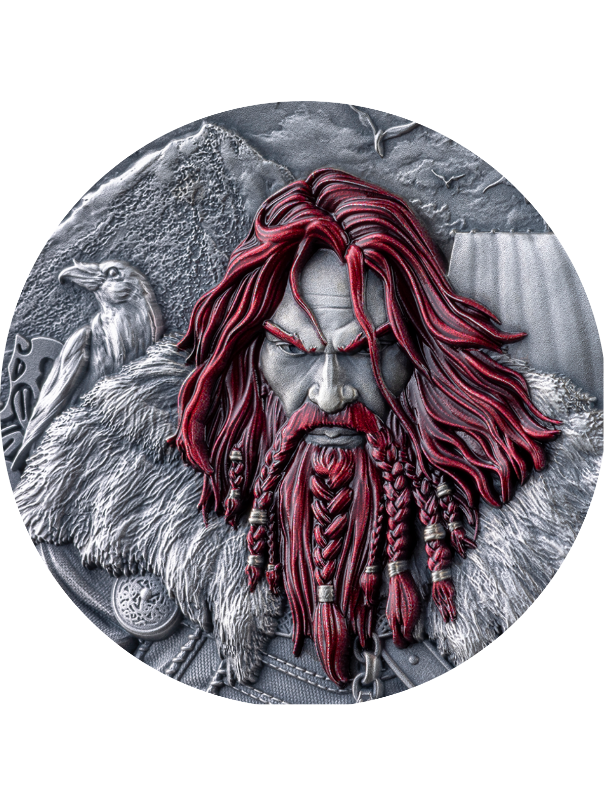Set sail with 'Erik the Red', the second coin in the 'The Way to Valhalla' series by MINT XXI. Clad in the tempest of exploration and conquest, the coin captures the Viking chieftain in his most formidable guise: axe in hand, a raven companion, and his gaze as piercing as the cold northern seas. Enhanced with digital printing that breathes fire into his red beard and hair, and sculpted in high relief, it showcases the might of his arms. Banished from Iceland, he sailed beyond the edge of the known world to Greenland, founding the first Norse settlements amidst ice and stone.