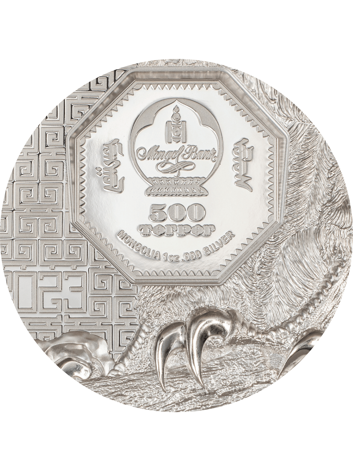 Crafted from once ounce of .999 pure silver, the FALCON Wild Mongolia coin is finished with a proof finish that gives it a stunning, mirror-like shine