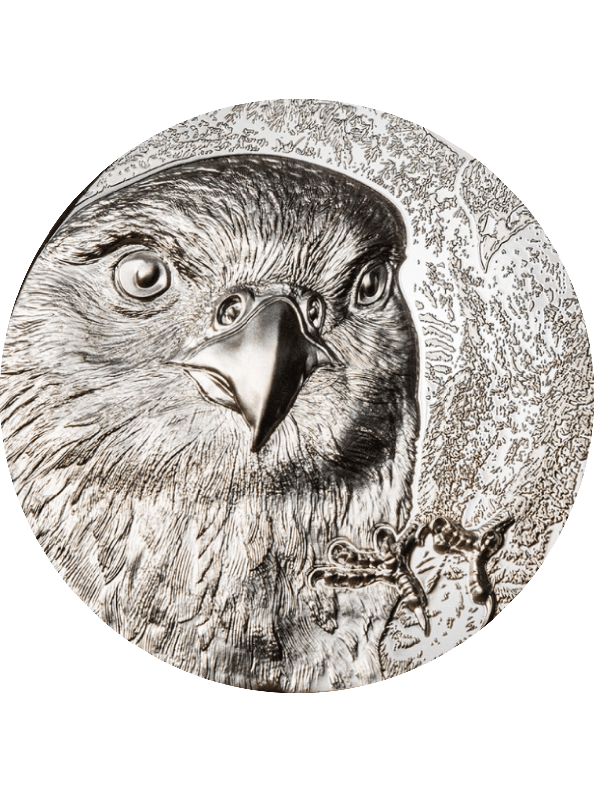 FALCON 1 Oz Silver coin is the new issue in the "Wild Mongolia" series and depicts a beautiful Falcon. The coin has High relief, has an incredible design, has Proof quality and comes in a case, along with the Certificate of Authenticity. Limited mintage of 2500 pieces worldwide.