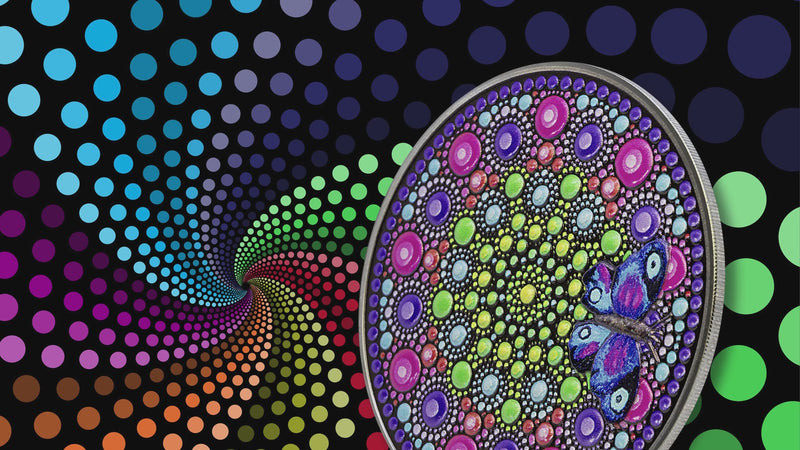 FLOWER WITH BUTTERFLY 3 Oz Silver coin is the new issue of “Dot Art” series in this edition: Flowers with Butterfly. The coin has a special design, has a beautiful coloring, has a Black Proof quality and comes in a case, along with the Certificate of Authenticity. Limited mintage to only 333 pieces worldwide!