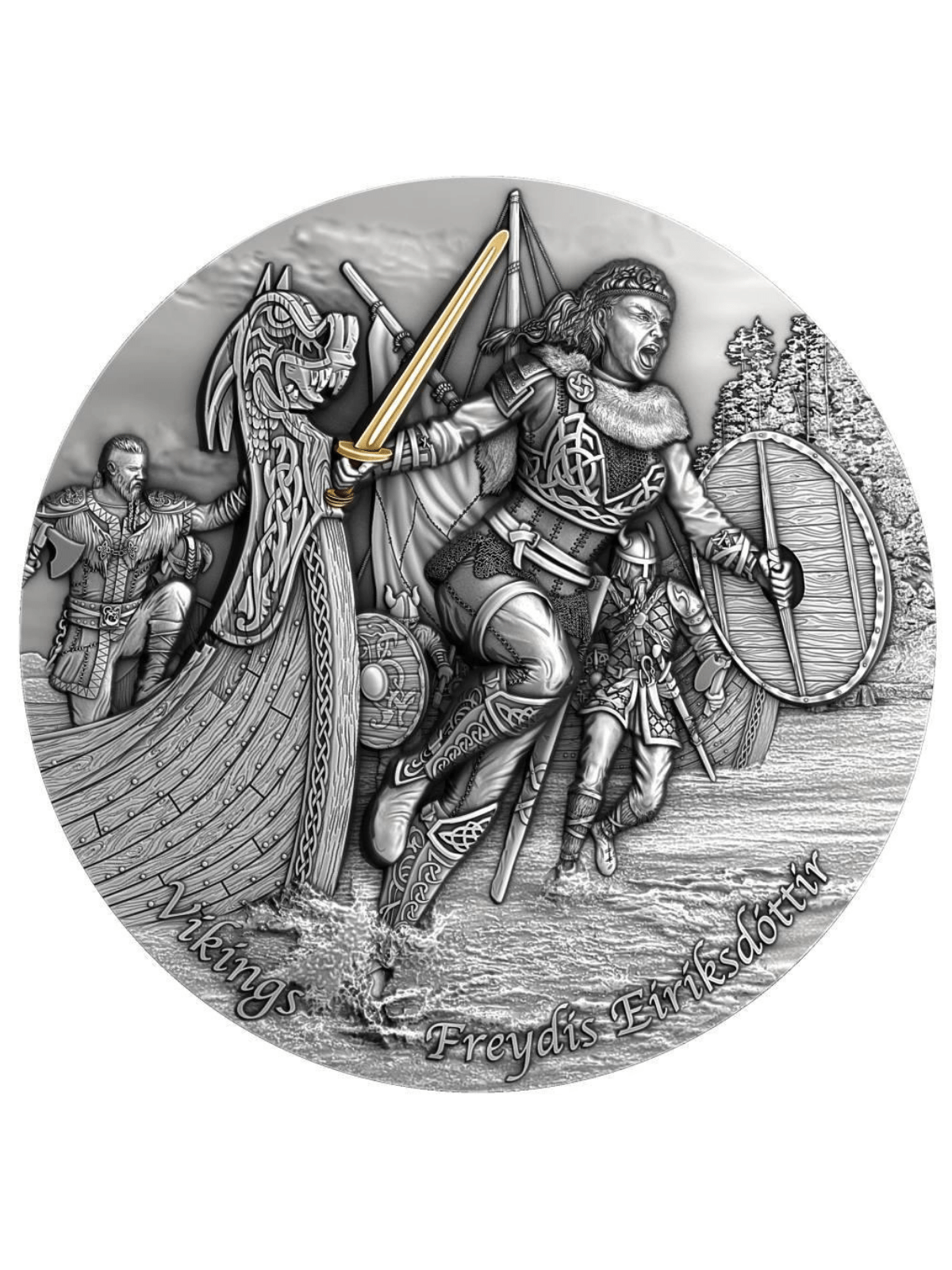 Crafted from 0.999 pure silver, this exceptional coin pays tribute to the legendary Viking explorer and warrior, Freydis Eiriksdottir