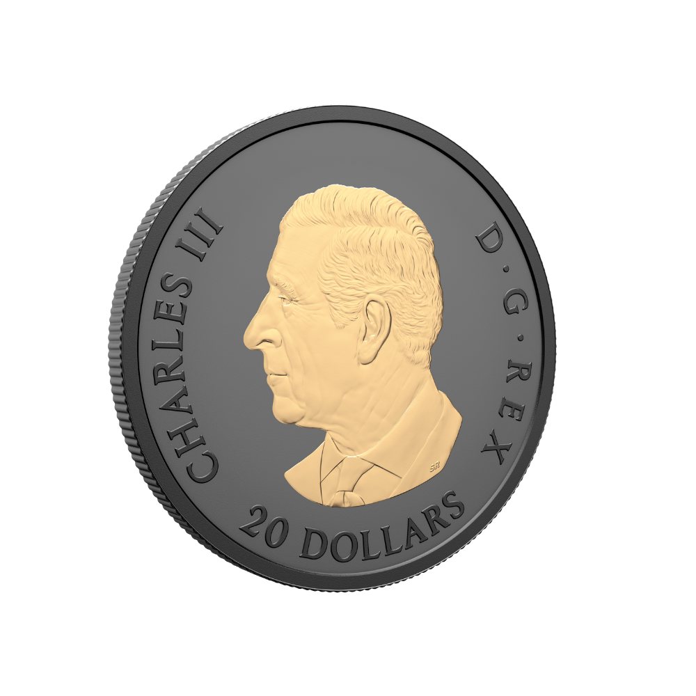 A single golden maple leaf gleams in tranquil beauty, set against the dark shimmer of black rhodium plating. This 1 oz 99.99% pure silver coin captures the serene elegance of autumn through exquisite contrast and craftsmanship. The radiant gold plating highlights Canada’s national emblem — the sugar maple leaf — transforming it into a timeless symbol of strength, grace, and resilience.