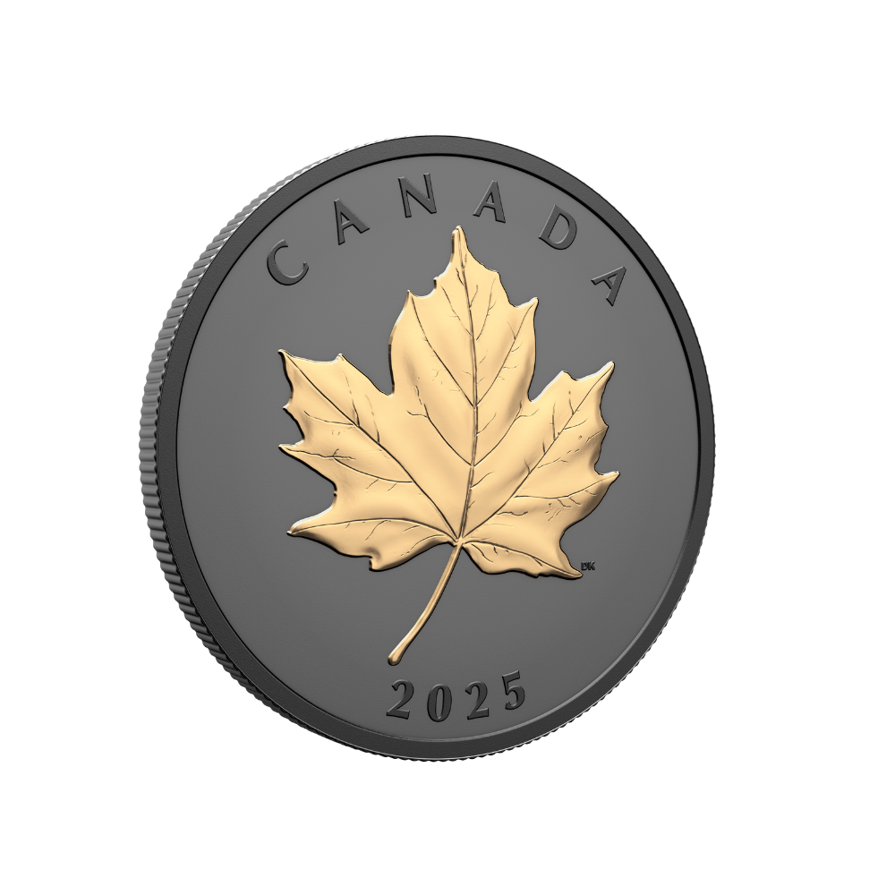 - A modern classic – A stunning reimagining of the maple leaf, plated in gold and contrasted with a deep black rhodium field for a dramatic interplay of light and shadow.