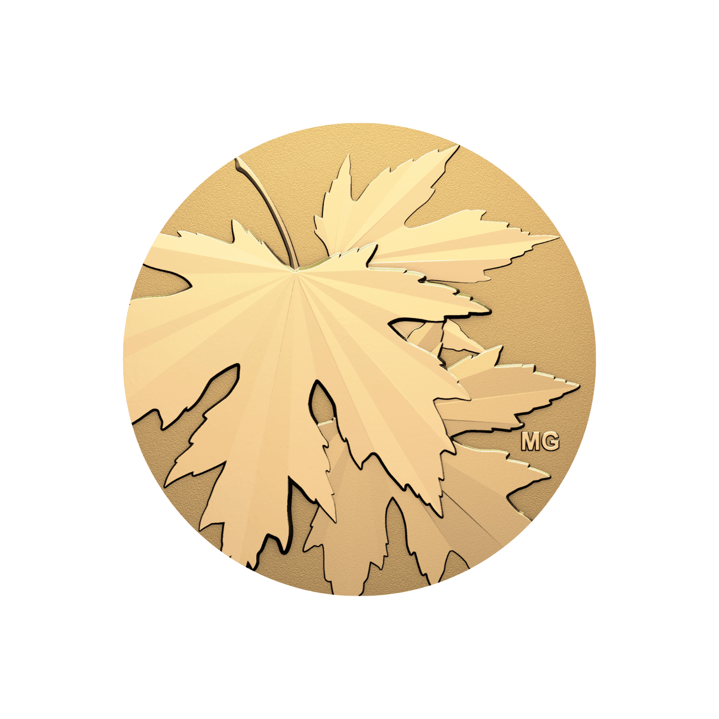 A multifaceted maple portrait in ¼ oz. of pure gold.