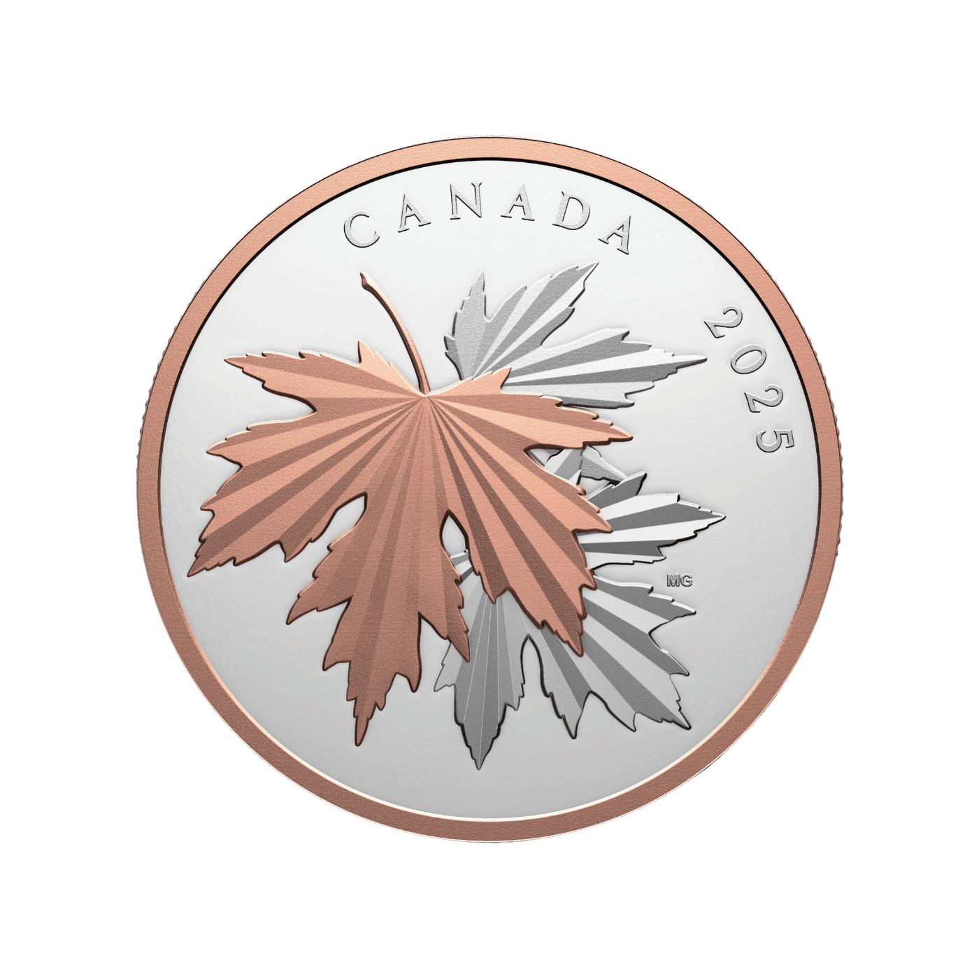 - Multifaceted engraving. An innovative approach to minting dimensional art, multifaceted engraving involves the creation of multiple facets that reflect the light in different directions and give shape to key design elements—in this case, three Canadian maple leaves.
