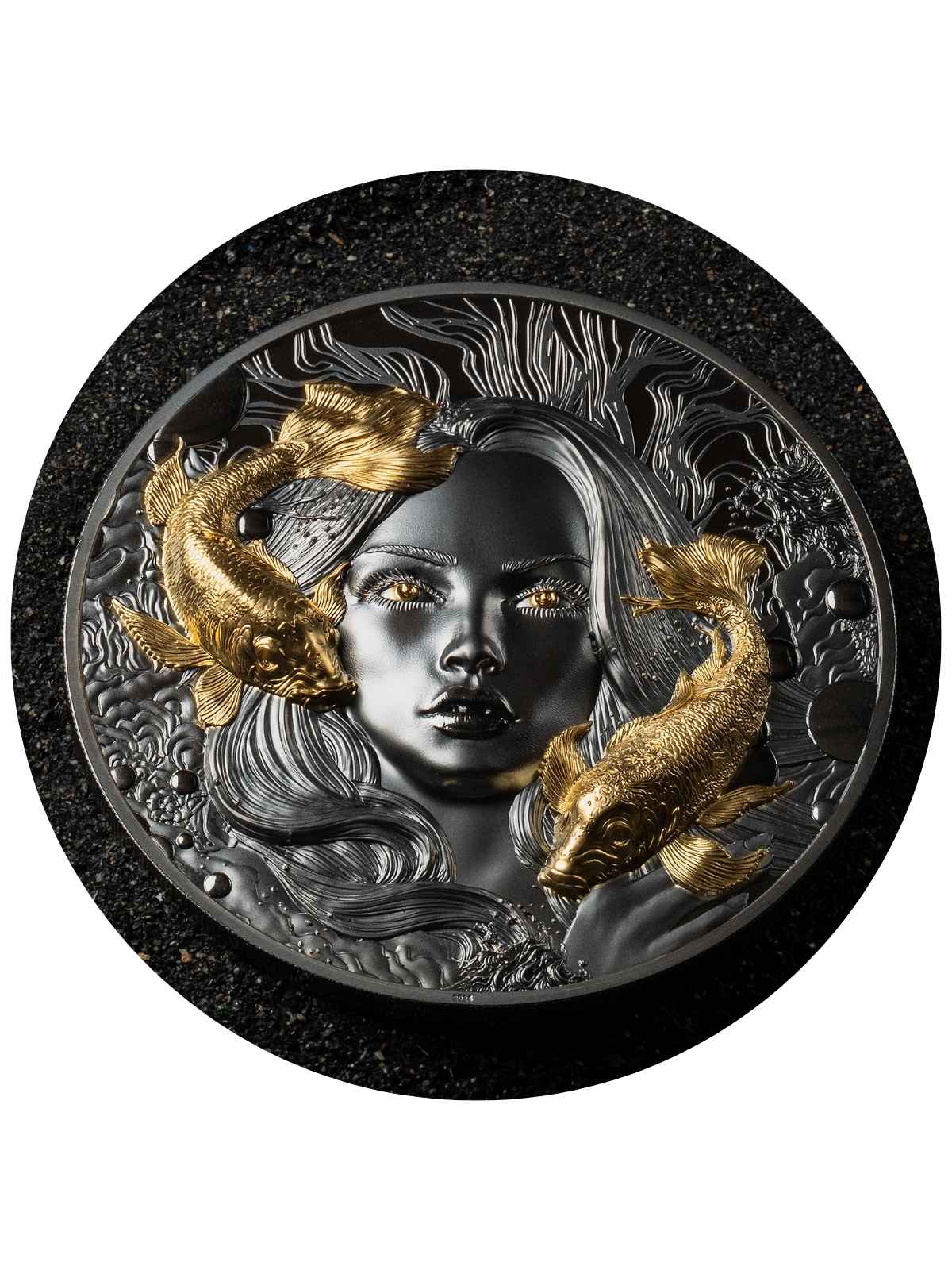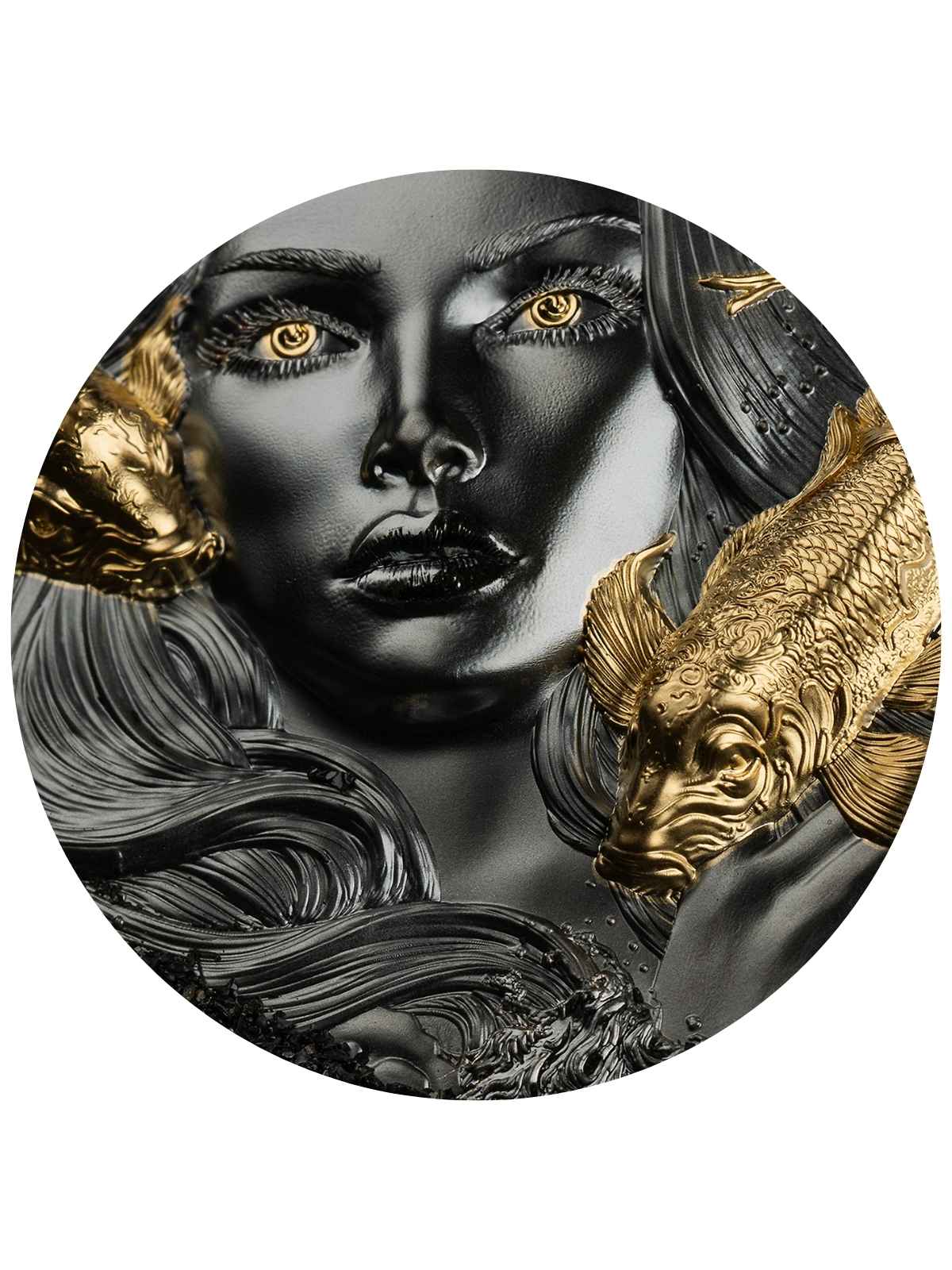 This exquisite 2 Oz Silver Coin is a stunning tribute to Amphitrite, the sea goddess of Greek mythology and wife of Poseidon. Known as the personification of the sea, Amphitrite is often depicted as a calm and benevolent goddess. This 2024 coin from Palau features a Black Proof finish with matte and polished elements, enhanced by gilded fish and glowing eyes, creating a breathtaking visual effect in smartmintingĀ® ultra high relief. It comes in a case with a Certificate of Authenticity limited to just 888 pieces worldwide!