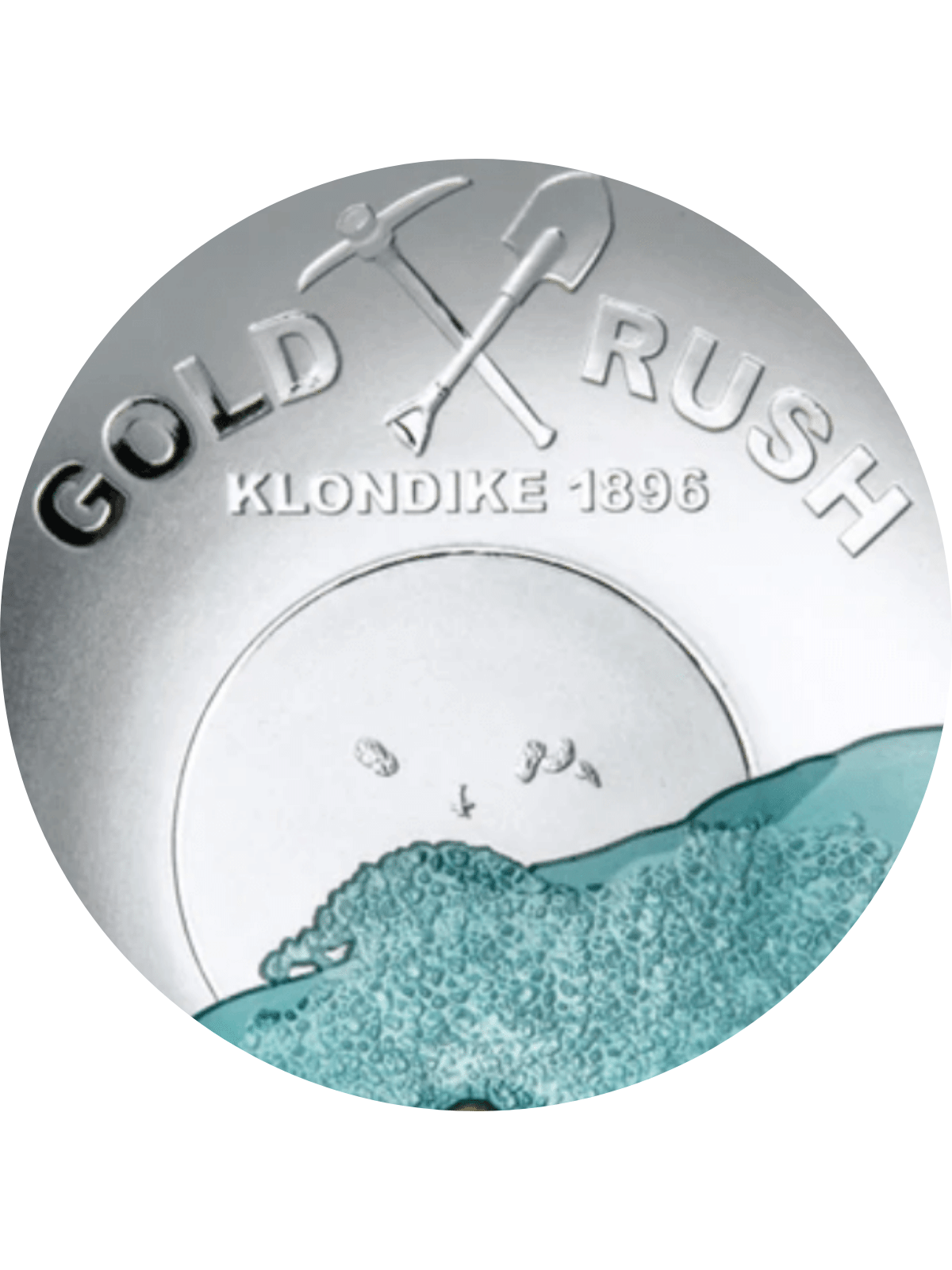 About the GOLD RUSH KLONDIKE 125TH ANNIVERSARY CONVEX 50g Silver Coin $5 Solomon Island 2021