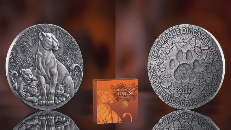 GRACE OF LIONESS Circle of Life 2 Oz Silver is the first issue of the "Circle of Life" series and is dedicated to the lioness. The coin has beautiful details, an Antique Finish quality, has High Reliefs and comes in a luxury case, along with the Certificate of Authenticity. Limited mintage to only 500 pcs worldwide.