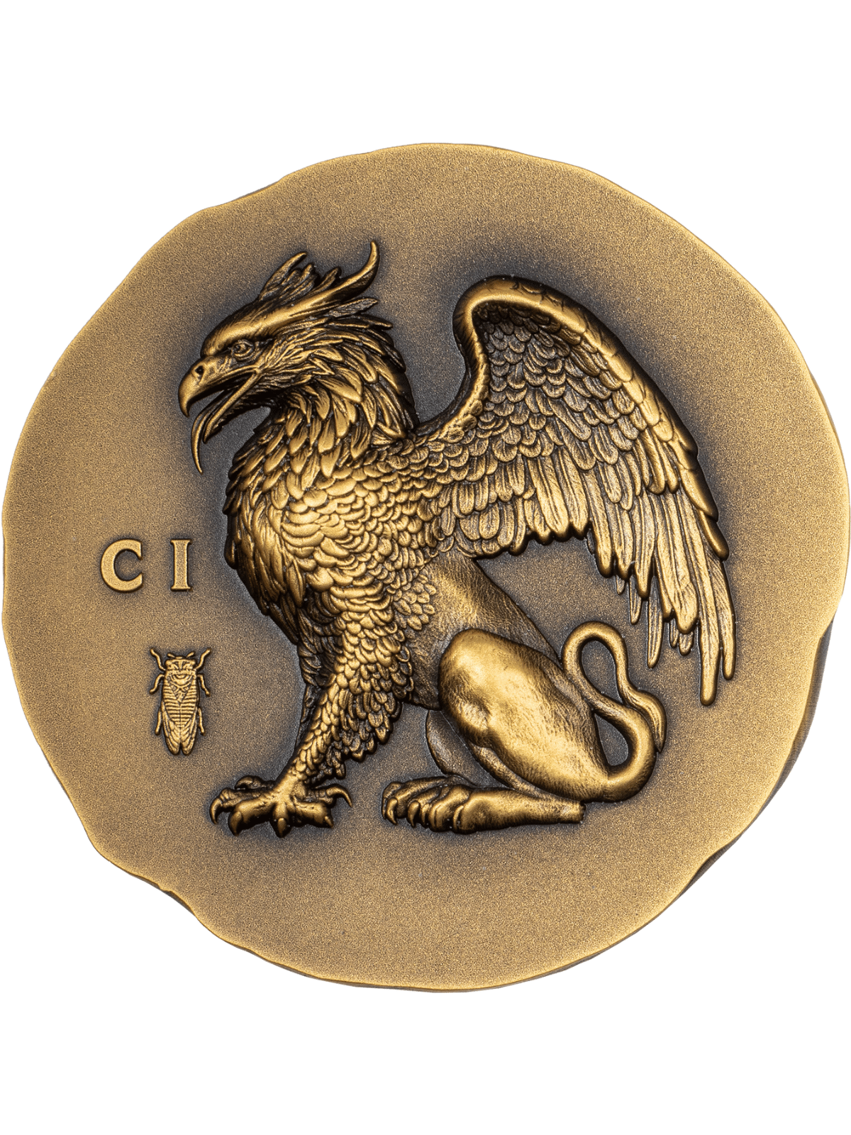 Gryphon 1 Oz Gold coin is part of the “Numismatic Icons” series and features one of the most recognized creatures in Greek Mythology: Gryphon. The coin has Antique Finish quality, features Smartminting Ultra High Relief and comes in a case, along with the Certificate of Authenticity. Strictly limited mintage of 199 pieces worldwide!