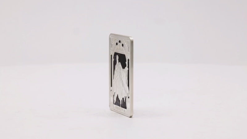 Limited to just 2,000 pieces worldwide, the Dementor is depicted in intricate frosted engraving, with a color-printed background adding dramatic contrast. True to the series' style, the design features a Hogwarts-inspired arch framing both sides, set with three black cubic zirconia stones for added gothic detail. The Dementor's name is displayed at the bottom, offset by a sleek mirror-finish for extra elegance.