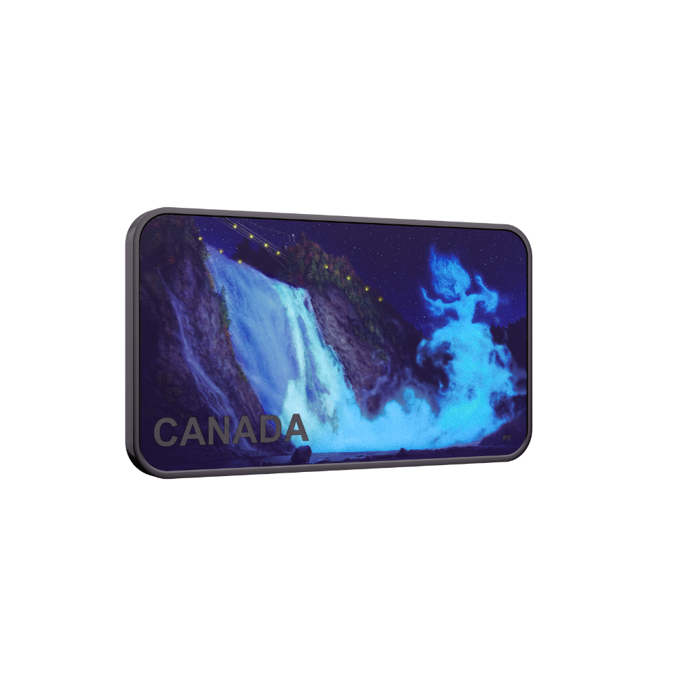 This spine-chilling story of love and loss comes to life once again in the Haunted Canada series, reimagined in a new rectangular 1 oz 99.99% pure silver format. Under regular light, the coin beautifully captures the majestic falls; under black light, the spectral figure of the Lady in White emerges in glowing detail, a haunting vision of eternal grief and devotion.