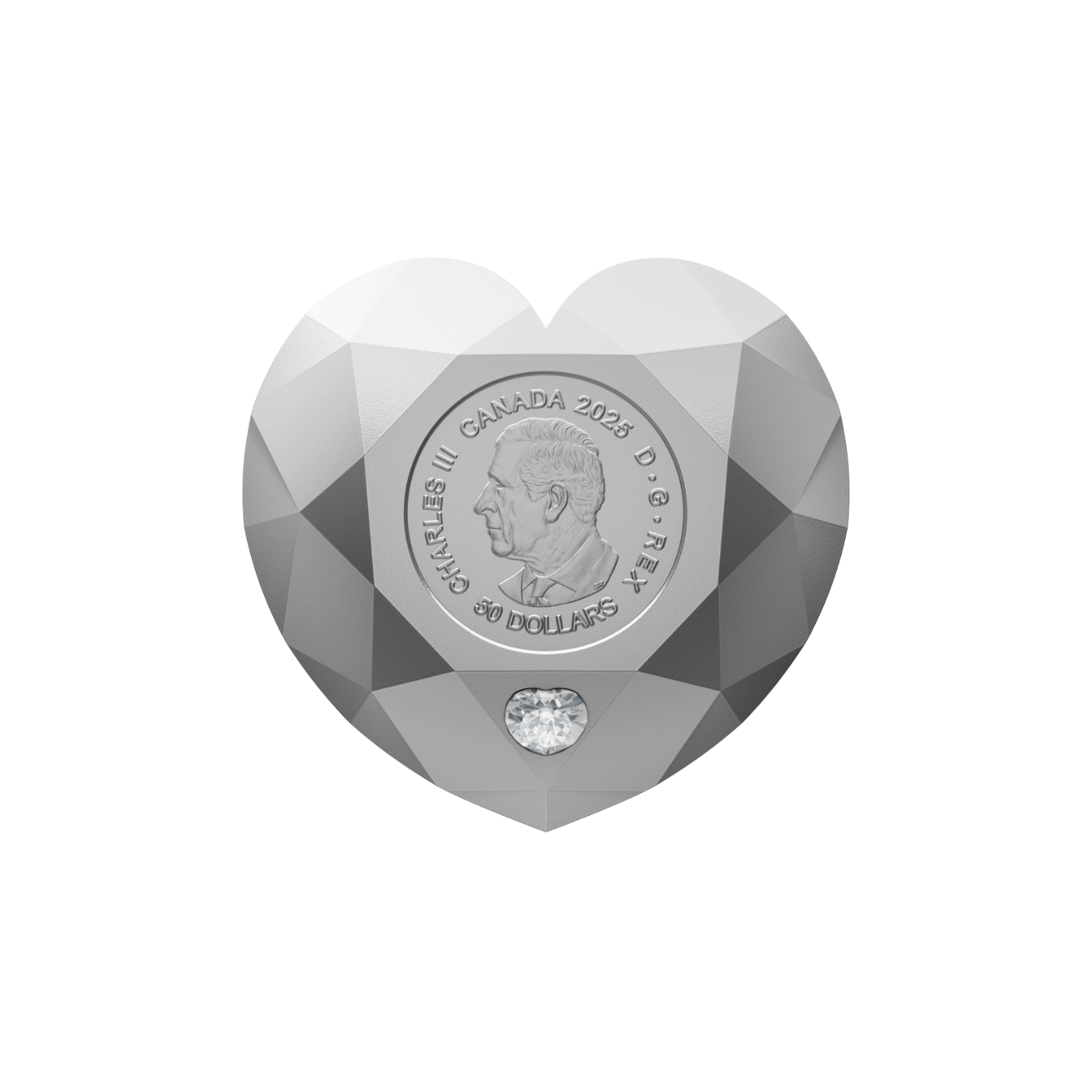 2025 Heart Cut Diamond – Final Coin in the Canadian Diamond Shape Series | 99.99% Pure Silver + 0.23 ct Ideal Cut Diamond