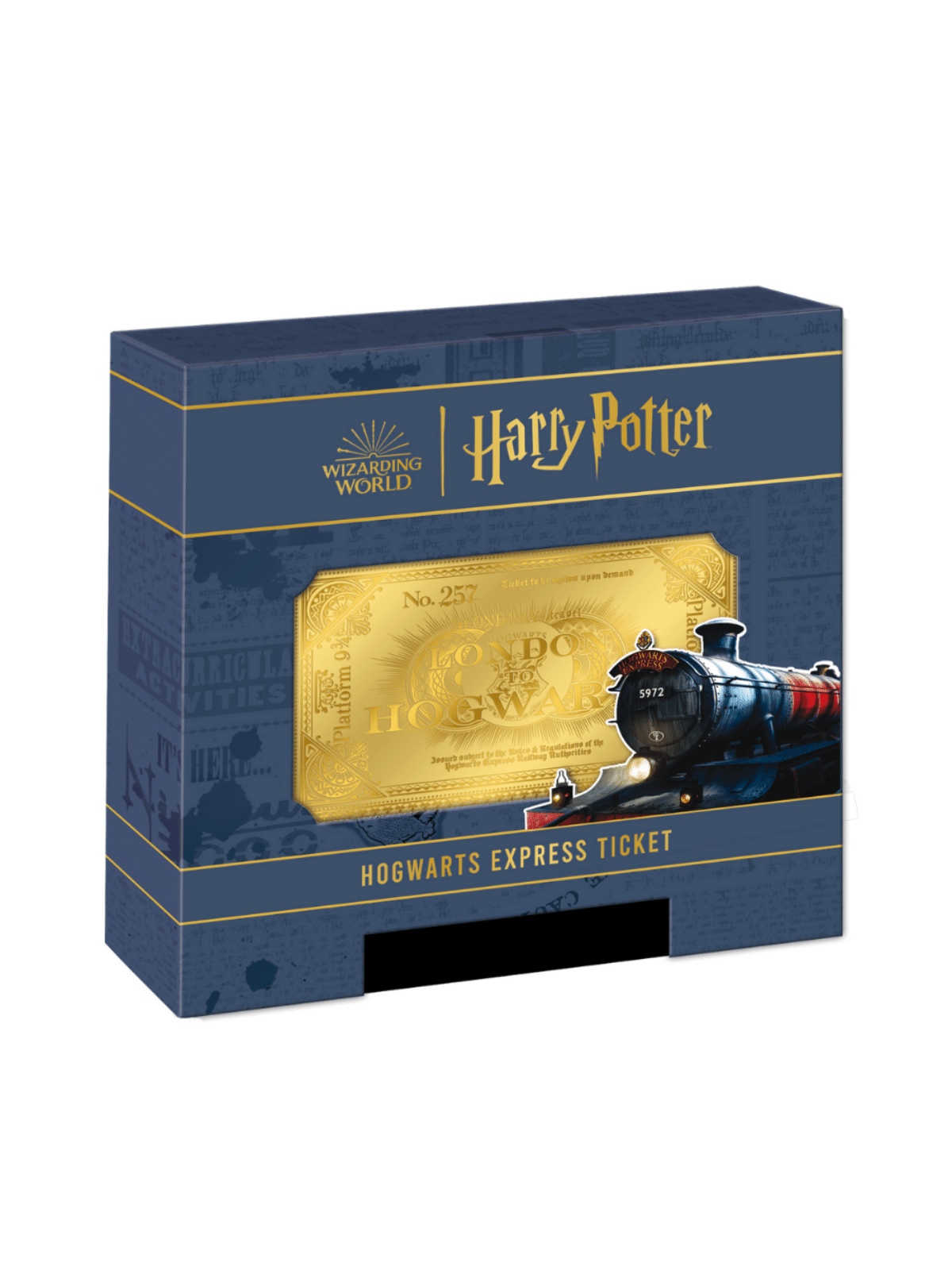 HOGWARTS EXPRESS TICKET 0.5g Gold Note is the replica of the original ticket Harry Potter received to enter Hogwarts. The note has a beautiful shaped, proof-like and officially licensed quality and comes in a themed case, along with the Certificate of Authenticity. Limited mintage of only 9750 pieces worldwide.